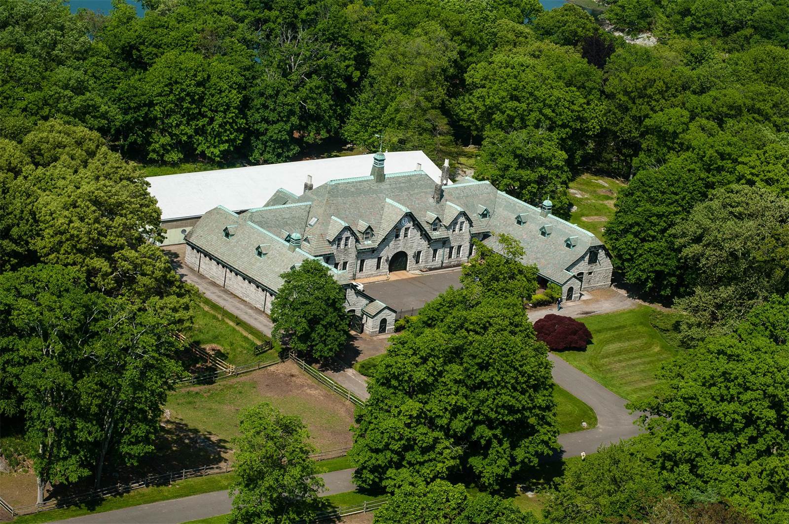 This over-the-top estate was built for baking powder tycoon William Ziegler, whose family still owns it and are listing it for the first time in more than a century. The 13,000-square-foot main house has unobstructed views of Long Island Sound, thanks to the fact that it sits on 63 secluded acres surrounded by an additional 14 acres of conservation land. Also on the property is a 30-stall horse stable with a Guastavino tile ceiling à la Grand Central Terminal, several beach cottages, a gatehouse, greenhouse and a yachtbasin with docks.