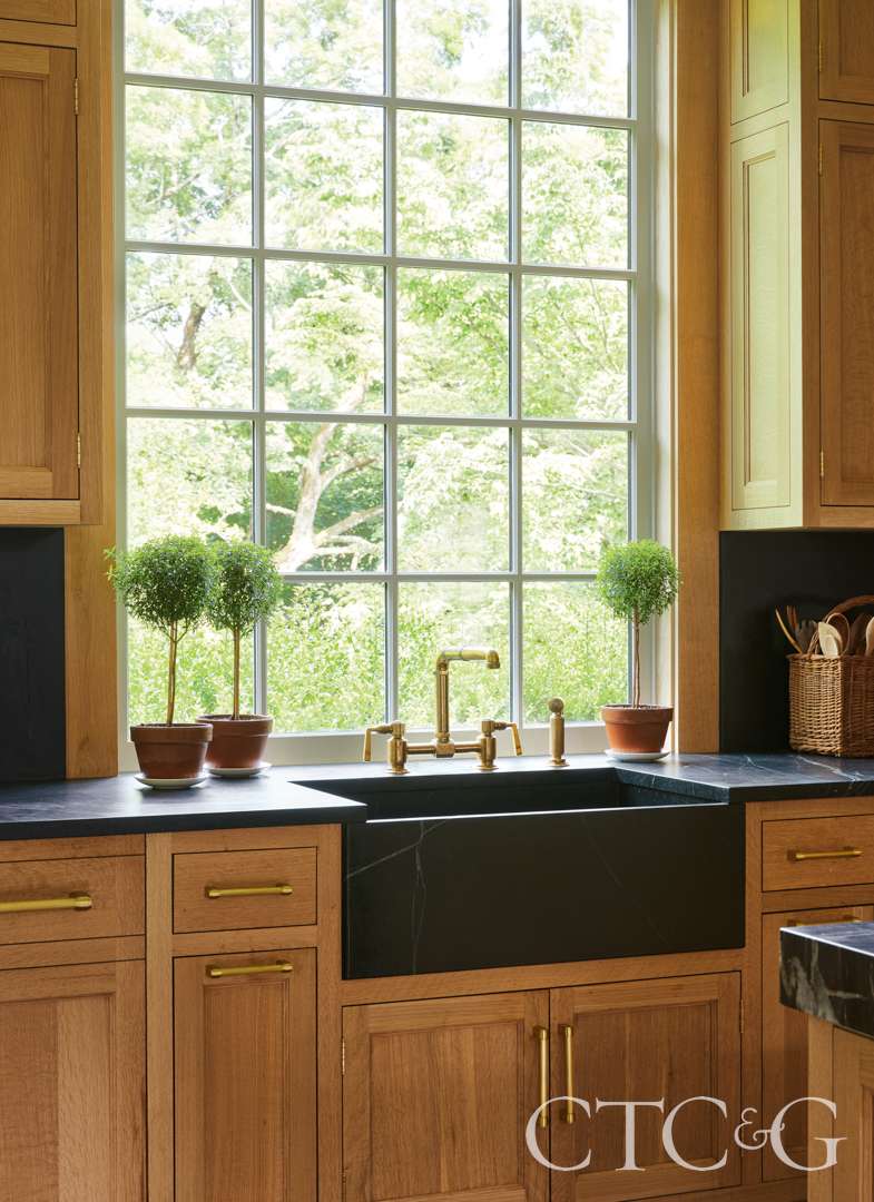 A Waterworks faucet adorns the sink, which is crafted from the same soapstone as the counters and backsplash.