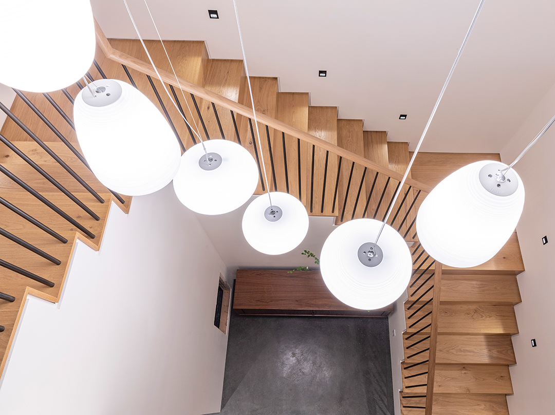 You can tell the modern’s three floors were meticulously thought out, with the top and bottom floors holding the bedrooms and the central living space being an open-concept entertainer’s dream. Chic yet minimalist, the kitchen looks out onto the rest of the living space, serving as a sort of anchor for any festivities. The cherry on top? A Maine Cedar hot tub to stay toasty warm despite the frosty conditions.