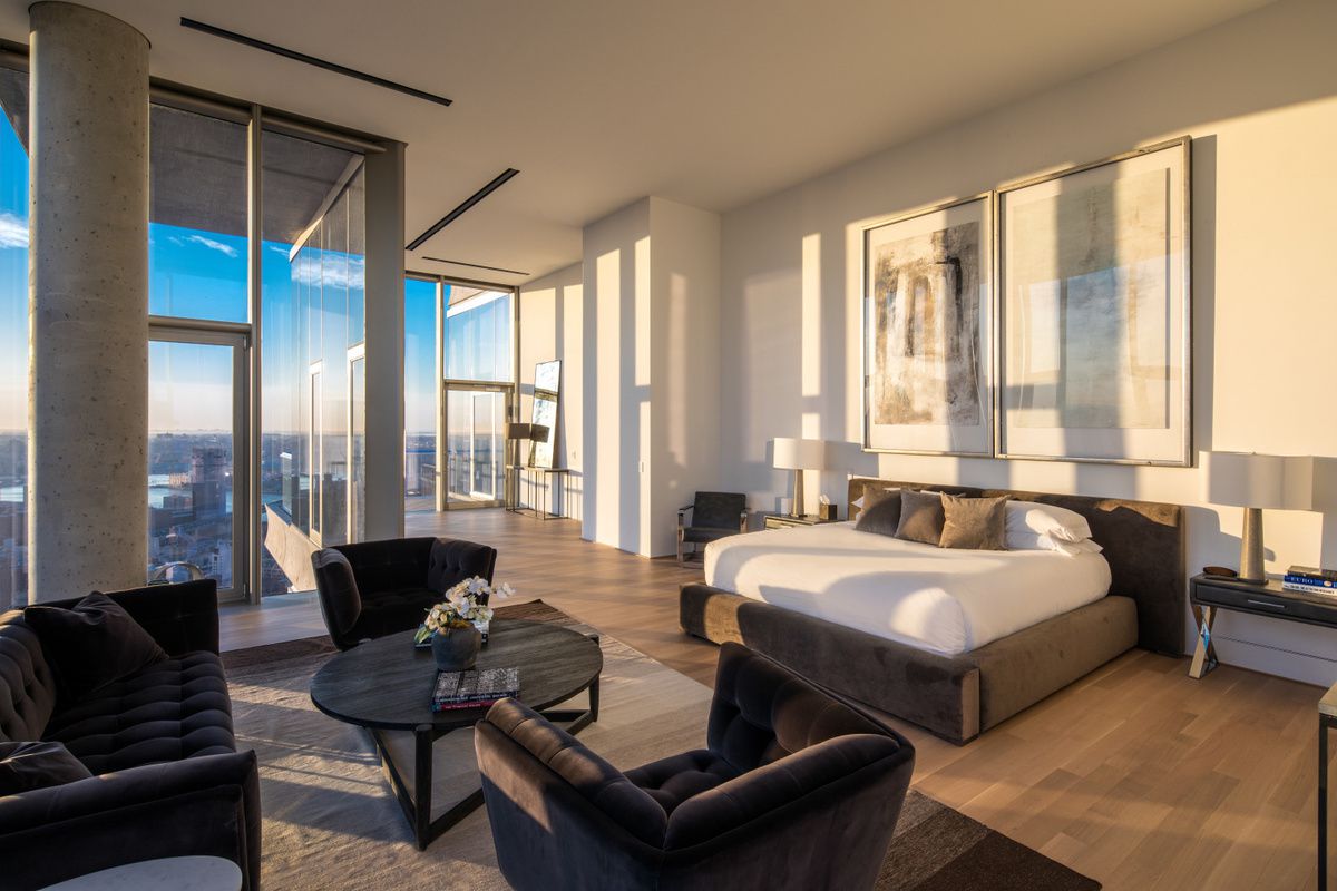 For $65M, you can have the best seat in the house for any 4th of July fireworks display in NYC. This sprawling duplex penthouse in Tribeca’s 56 Leonard— also known as the “Jenga Tower” for its stacked façade designed by Pritzker Prize-winning architects Herzog & de Meuron—boasts seamless walls of glass and 360º views from 7 terraces. The 11,892-square-foot duplex was created by combining two penthouses in the building into one expansive residence that contains 8 bedrooms and 9 bathrooms along with grandly scaled entertaining spaces and 2 wood-burning fireplaces. Compass’s Toni Haber, who shares the listing with colleague Leonard Steinberg, told Mansion Global that this penthouse represents “a once-in-a-lifetime opportunity to own a trophy property in an iconic building.” The penthouses remain for sale separately at $35M and $30M.