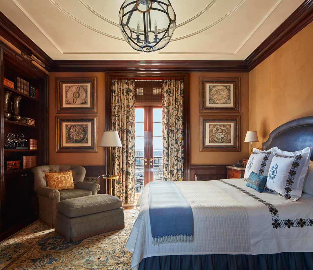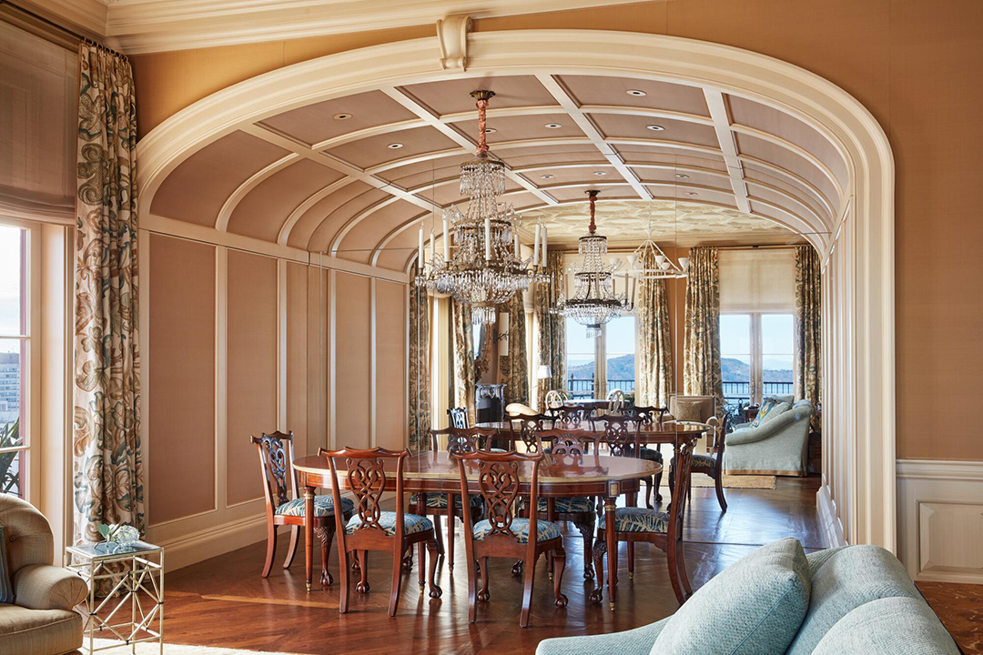 Atop a Beaux Arts-style Pacific Heights buildings sits the highest-priced listing in San Francisco. Artfully renovated down to the studs by architect Andrew Skurman and interior designer Suzanne Tucker, the 5,700-square-foot city residence now nods to Georgian design sensibilities and employs plenty of color, texture, and pattern. Truly, the home has unmatched interiors and views, which all contributes to the $35,000,000 ask.