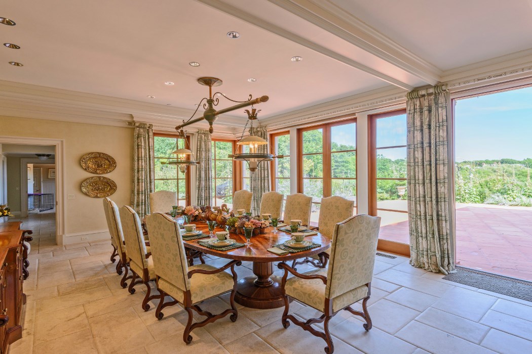 The breakfast room looks out over the patio.
