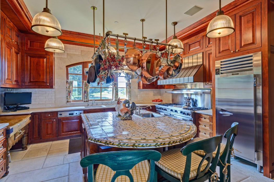 The chef’s kitchen features top-of-the-line appliances.