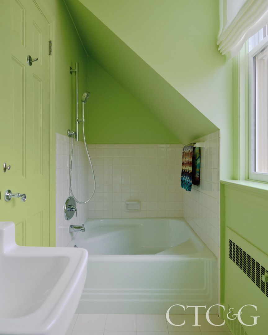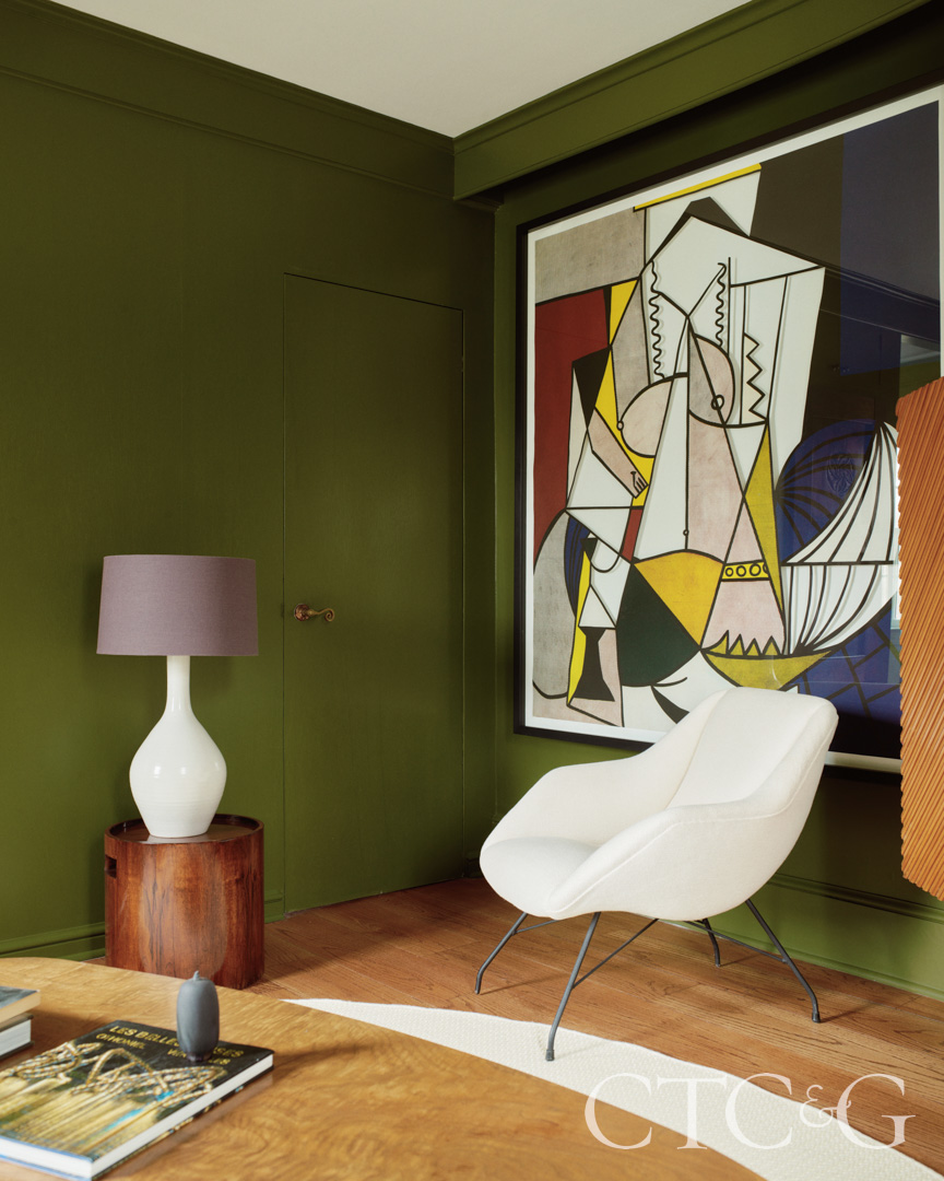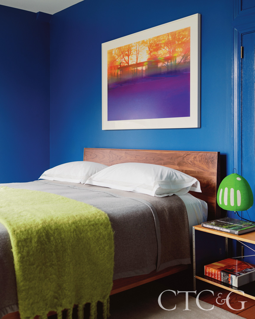 Working with the home’s natural quirks rather than against them, he washed the interiors with a rich palette of greens, pinks and blues. The overall effect is at once whimsical, fresh and sophisticated. Every room has its own point of view—where art takes center stage. Lonstein worked with the homeowners’ art advisor—Bridget Murphy—on which pieces should hang in each room. Murphy says: “It was a really fun process to collaborate with him on the art and see how he used color to tie it all together.”