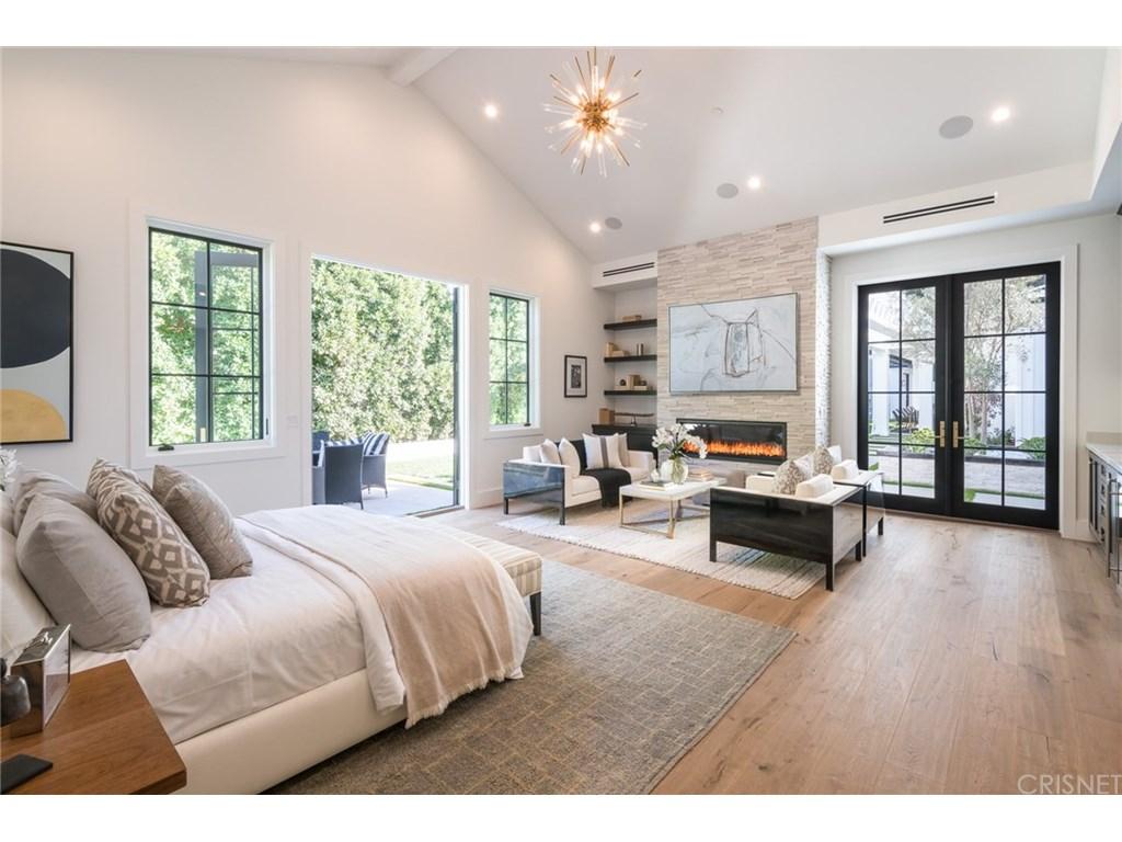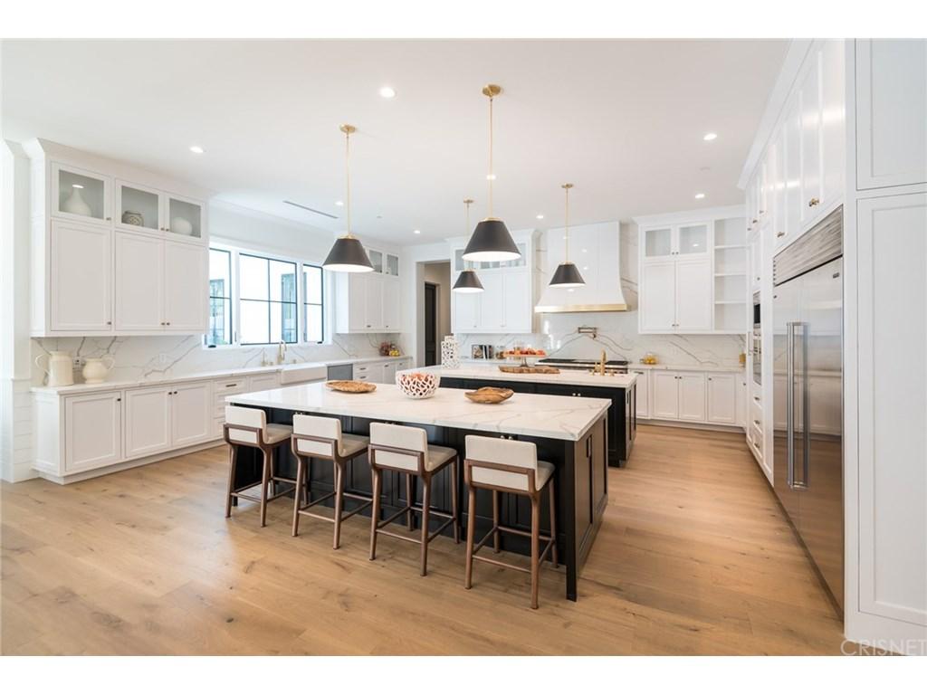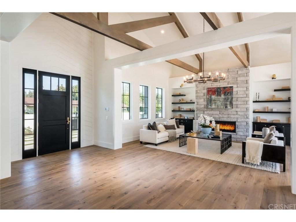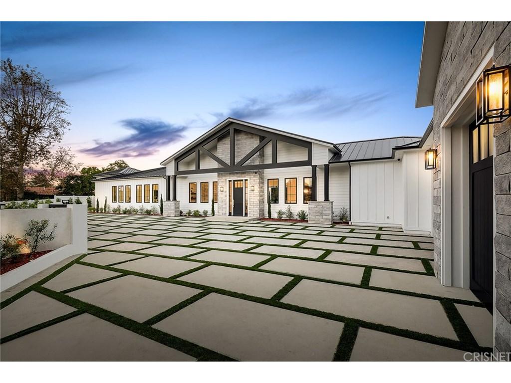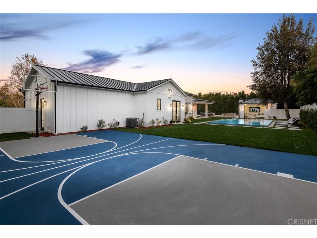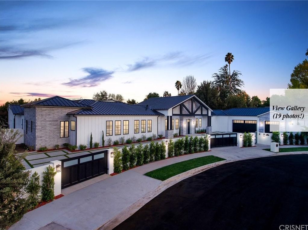 Actor Justin Hartley, who plays Kevin on This Is Us, just snapped up this chic Encino, California home with his realtor wife Chrishell Hartley. Built in 2018 and dripping with modern farmhouse style, the 6,762-square-foot abode has 6 bedrooms and 7.5 bathrooms, which will surely be enough space for entertaining all their family and friends.Both in the interiors and on the exterior, dark wood beams and stone accents contrast white walls for an airy yet dramatic vibe. Huge windows allow light to flood the main entry space, which encompasses both the dining room and living room and leads to the backyard through pocket sliding doors. Indoor/outdoor living is effortless no matter where you are in the house as the kitchen and family room area, the master bedroom, and office all open to the expansive outdoor space.Walk through the elegant courtyard to see the lush lawn, dining area, living area with a fireplace, pool, pool house, and basketball court. While there’s no doubt the star couple could spend most of their time outside enjoying the California sun, there are perks inside like a home theater and temperature-controlled wine room that will battle for attention.Ray Akbari and Cyrus Ahmadi of Standard Realty had the stylish listing. Variety first reported the recent purchase.