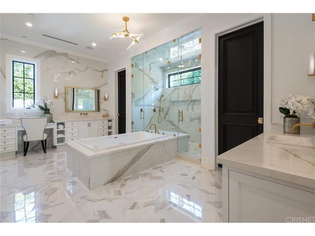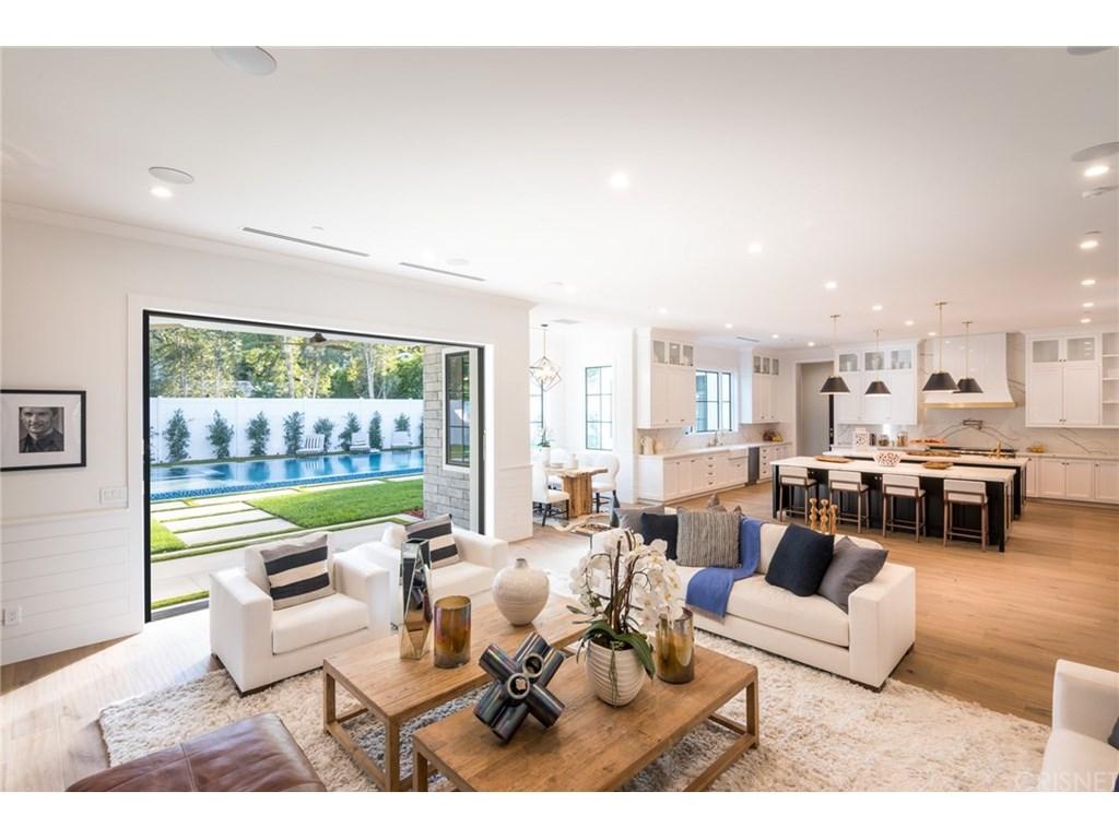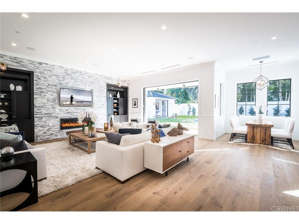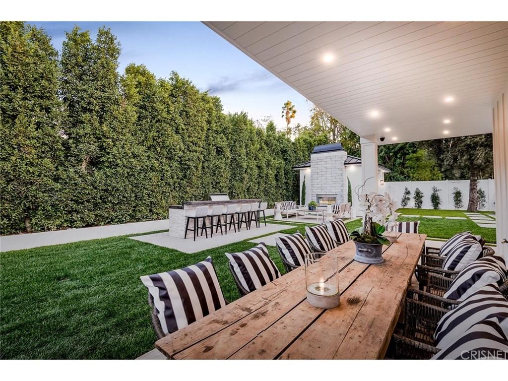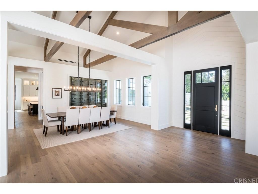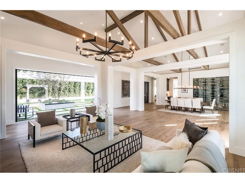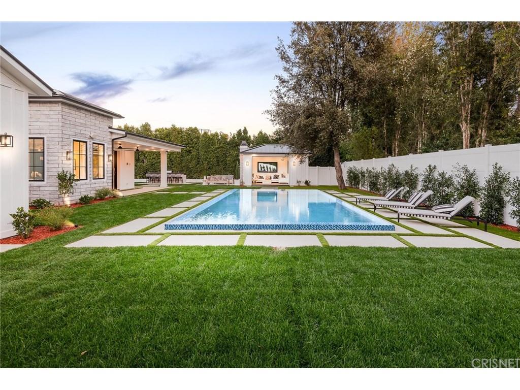 Actor Justin Hartley, who plays Kevin on This Is Us, just snapped up this chic Encino, California home with his realtor wife Chrishell Hartley. Built in 2018 and dripping with modern farmhouse style, the 6,762-square-foot abode has 6 bedrooms and 7.5 bathrooms, which will surely be enough space for entertaining all their family and friends.Both in the interiors and on the exterior, dark wood beams and stone accents contrast white walls for an airy yet dramatic vibe. Huge windows allow light to flood the main entry space, which encompasses both the dining room and living room and leads to the backyard through pocket sliding doors. Indoor/outdoor living is effortless no matter where you are in the house as the kitchen and family room area, the master bedroom, and office all open to the expansive outdoor space.Walk through the elegant courtyard to see the lush lawn, dining area, living area with a fireplace, pool, pool house, and basketball court. While there’s no doubt the star couple could spend most of their time outside enjoying the California sun, there are perks inside like a home theater and temperature-controlled wine room that will battle for attention.Ray Akbari and Cyrus Ahmadi of Standard Realty had the stylish listing. Variety first reported the recent purchase.