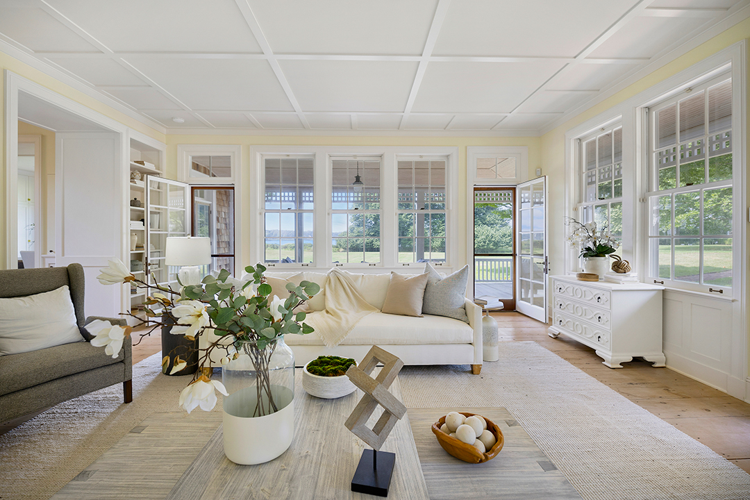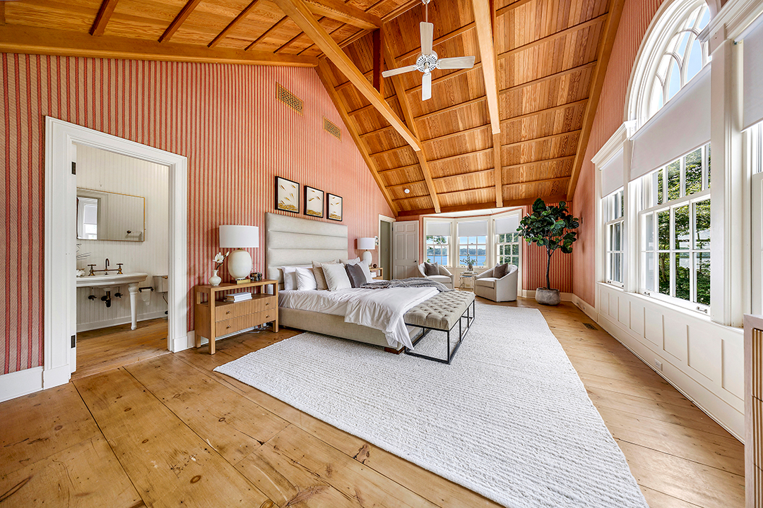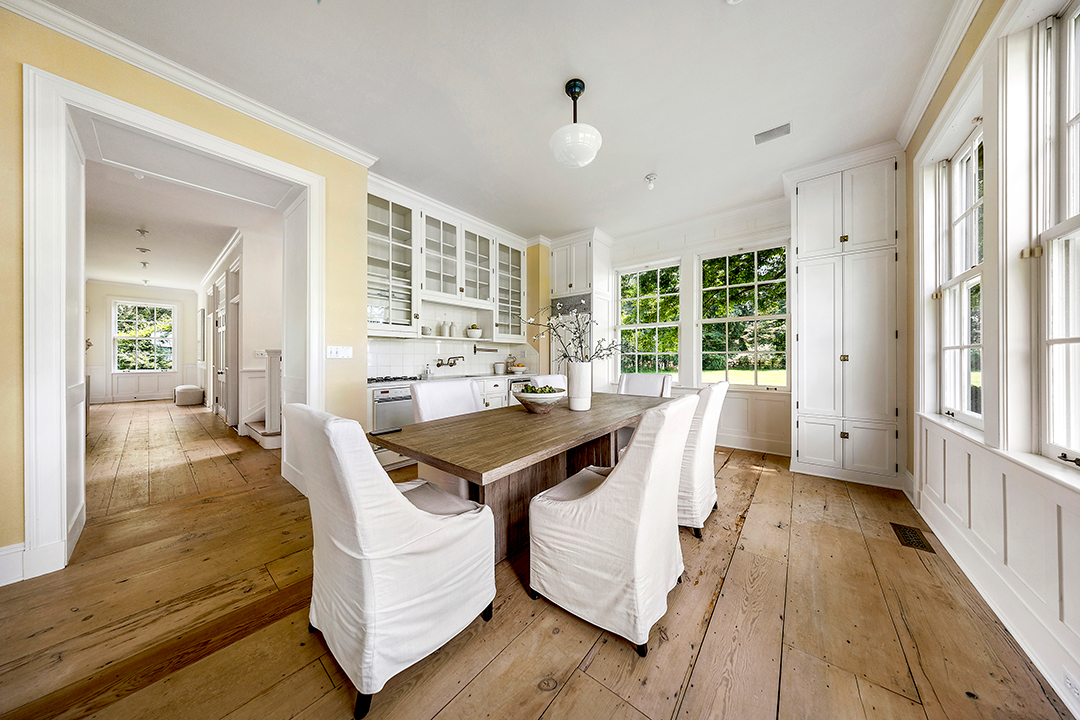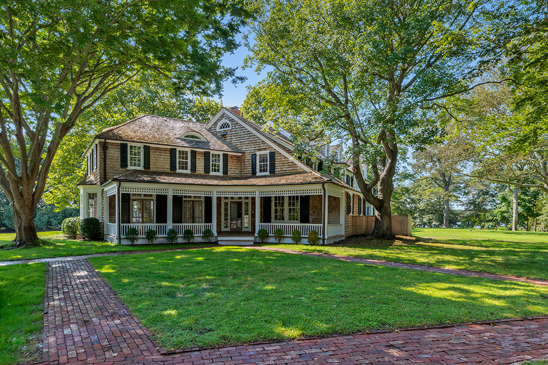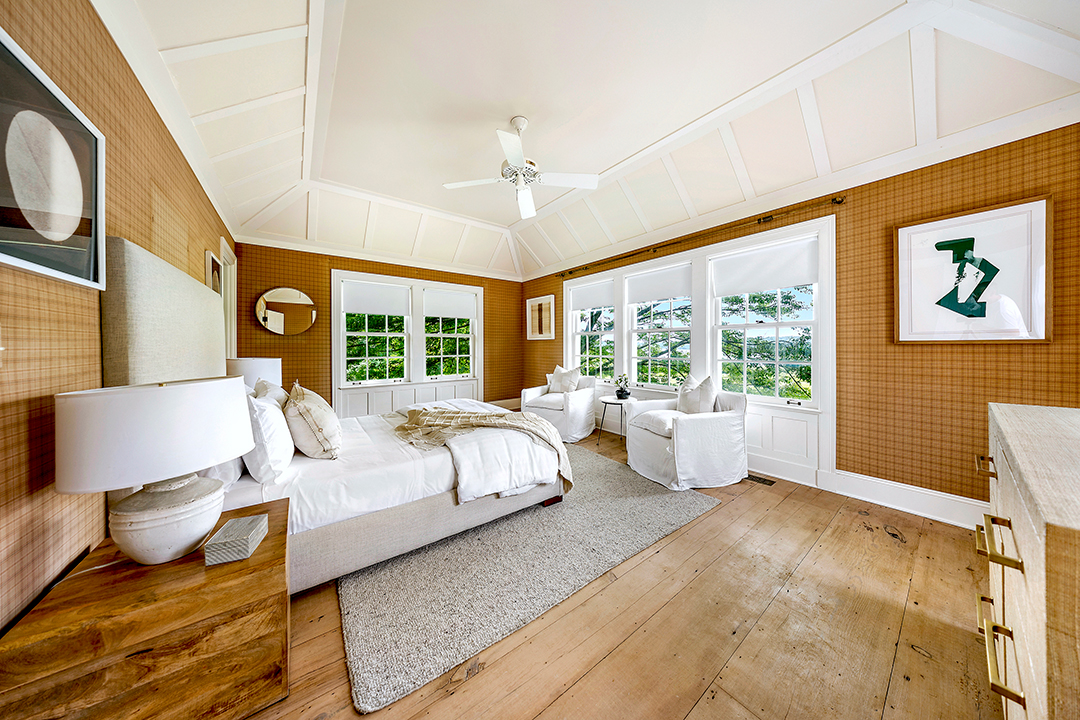 Perched upon 11 acres of land on the Georgica Pond, this Briar Patch Road retreat is vast yet welcoming with a quintessential Hamptons look. Driving up to the main house, a classic shingle-style exterior opens to airy, sophisticated interiors with wide plank wood floors and a soft color palette. Near the estate’s original structure sits its guest house, thoughtfully designed in 1990 by architect Peter Marino. This matching shingle-style abode is the size of most people’s primary homes. It boasts a kitchen, bright living areas and porches, and four bedrooms across the board.