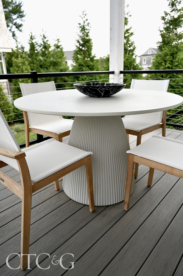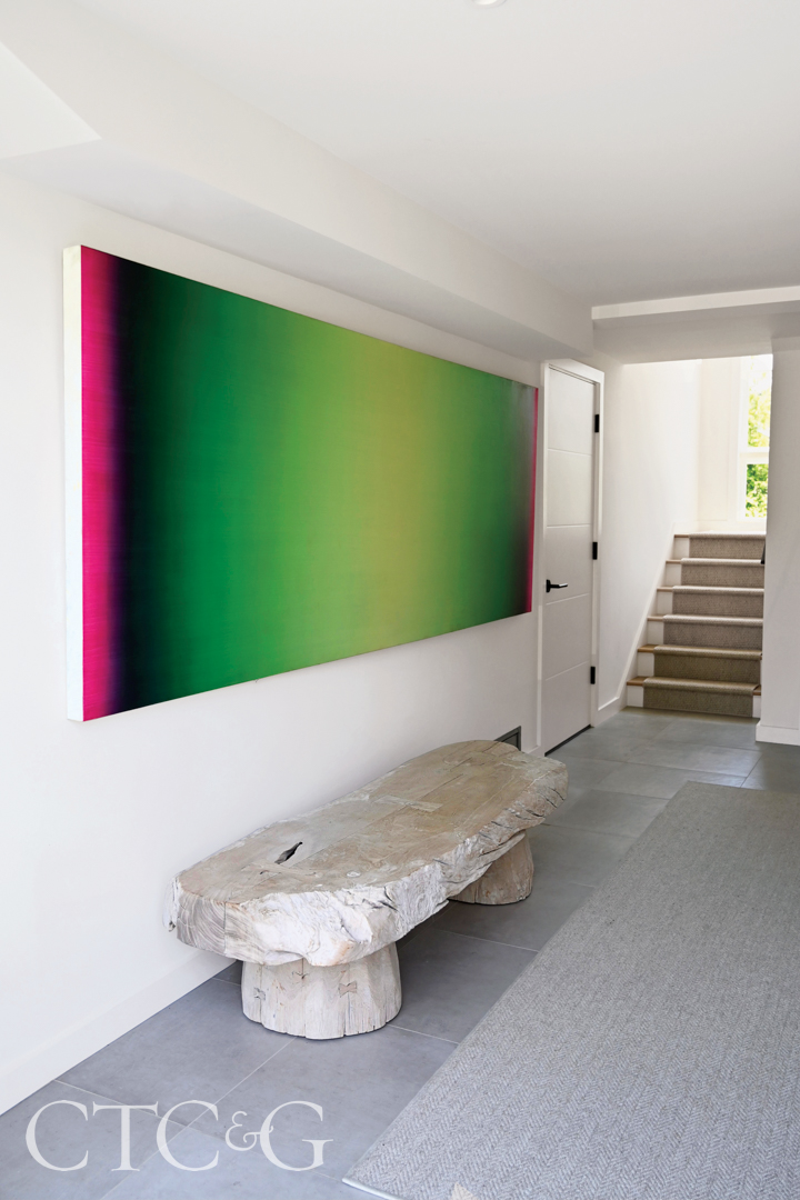 Though Jamie Camche—the founder and owner of JL Rocks in Westport—is a well-known tastemaker, it’s her husband, Glenn, who drove the design for their Saugatuck home’s major makeover. By day, he’s the president and creative director of Dolce Vita Handbags, but at his core, “Glenn is a frustrated architect,” notes Jamie. “Instead of looking through Vogue magazine like I do, he looks through real estate.”