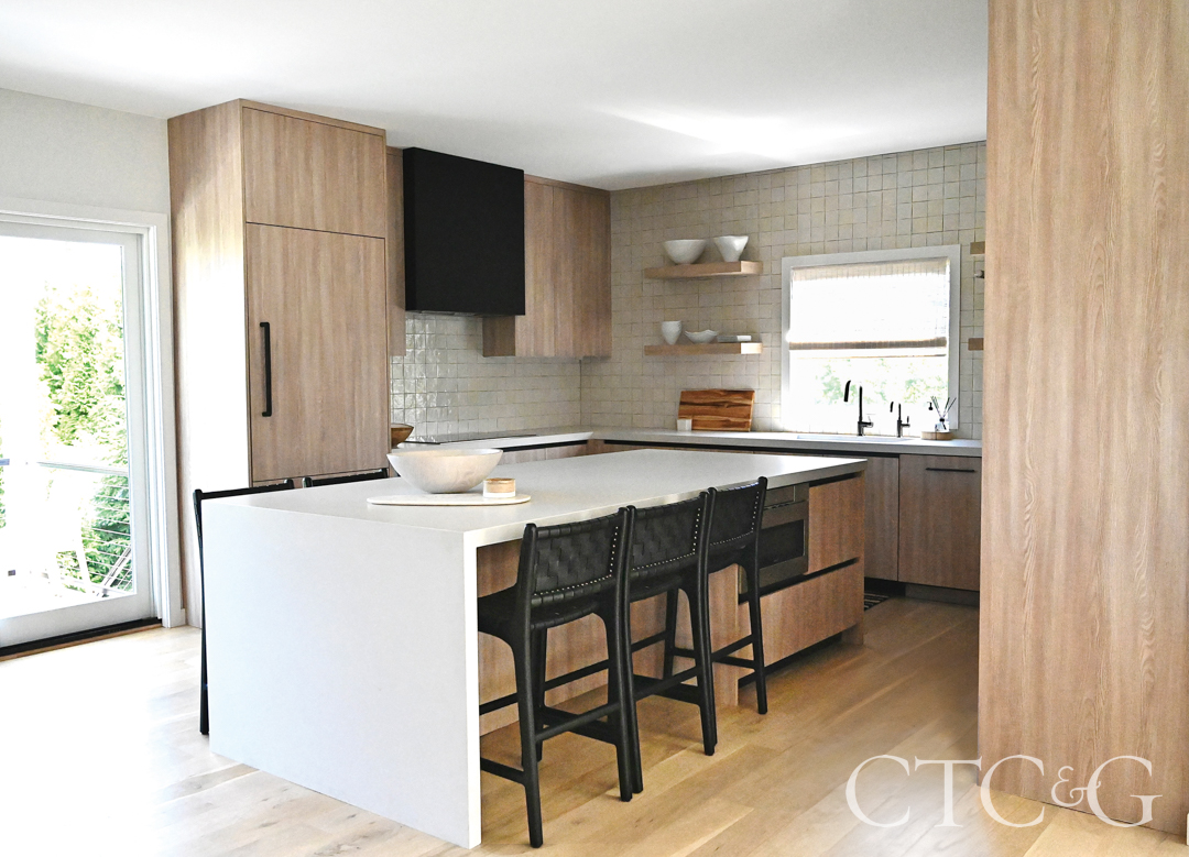 The kitchen is by IRP Design (now Culnova); the bar stools are from Stowed Home. Photography by Heather Desmond