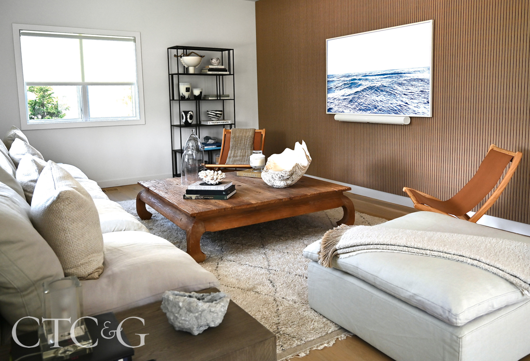 Where, for some, renovations are often nightmarish means to an end, for the Camches, each new home is an inspiring chance to create something fresh. “I just love the process,” says Glenn. Over the last decade, he and his wife have renovated three houses, not including the Westport home where they lived for 18 years (with two renovations) while raising their family. After the kids were grown, the couple spent a few years in a tiny 1920s cottage in Compo Beach that Jamie likens to a “sexy little two-seater convertible.” But when a broker friend called in 2019 and asked if they’d consider putting it on the market, they moved and took on a new project—a 1970s contemporary, their first place in Saugatuck Shores. They’d just finished getting it all up to date when that same broker friend called, wondering if they’d consider selling. So, they knocked on the door of this neighboring split-level, and the process began again.