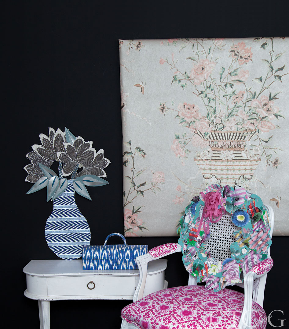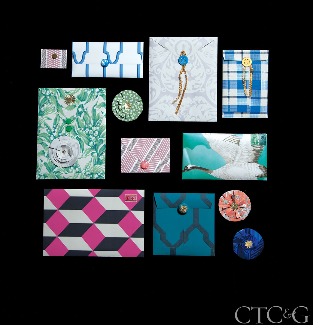 Multitalented designer Jennifer Paganelli is a wearer of many hats. It only takes a glance at her company, Sis Boom, to understand the extent of her creative endeavors. That’s why CTC&G asked Paganelli to take the helm on this wallpaper feature. With an unconventional approach, Paganelli asks readers to look at wallpaper through a different lens, creating three-dimensional objects that delight and inspire. It is no secret that wallpaper is making its way off walls and into other parts of our interiors—on ceilings, bookshelves and as art installments—but Paganelli stretches the boundaries of what wallpaper can be, and with her unmistakable hand has produced these flights of fancy.