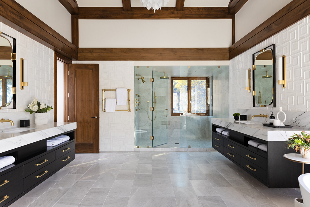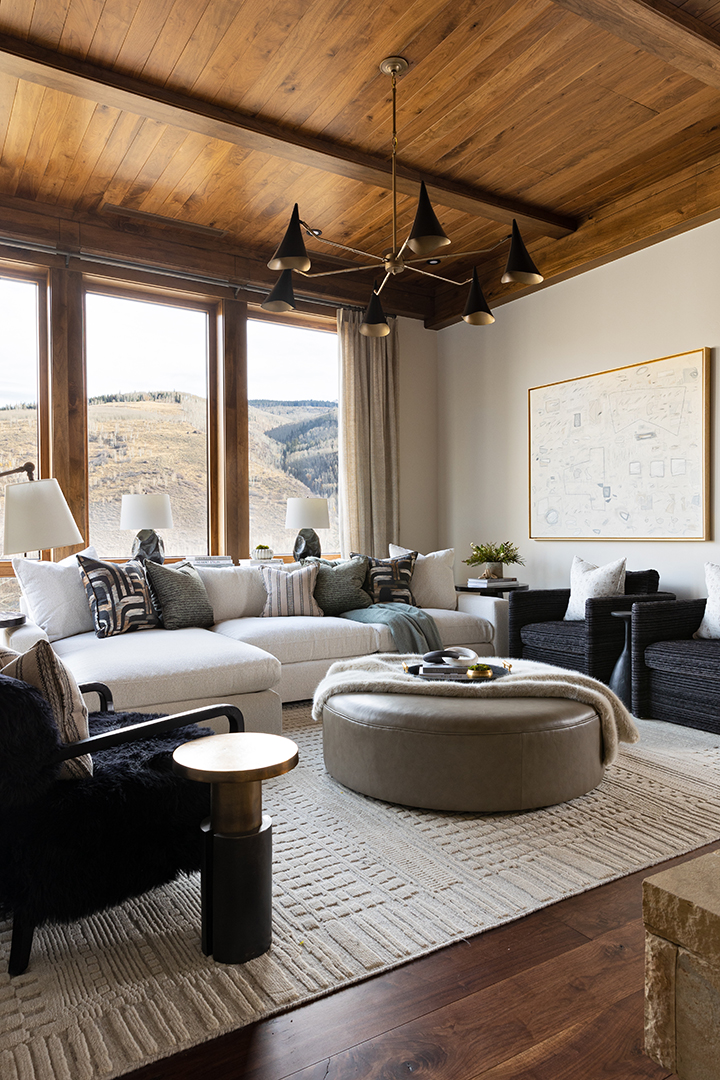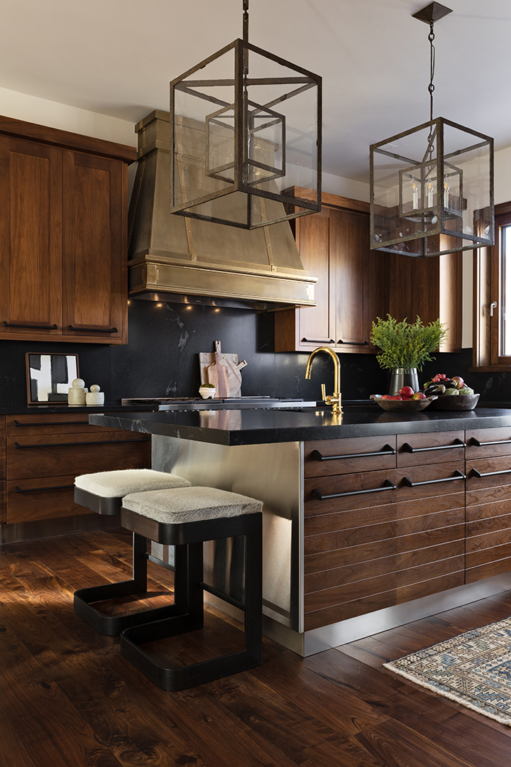 With architecture by Kyle Webb, interiors be Accetrics Interiors, and construction by George Shaeffer, the ski-in/ski-out beauty feels almost as expansive as the mountains behind it. Rich wood tones, sleek lines, and statement-making light fixtures come together to create a sophisticated mountain retreat ideal for gathering and unwinding. Primed for entertaining and hosting guests, there are eight bedrooms and nine bathrooms—but it would be hard for anyone to leave here.