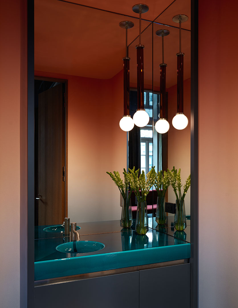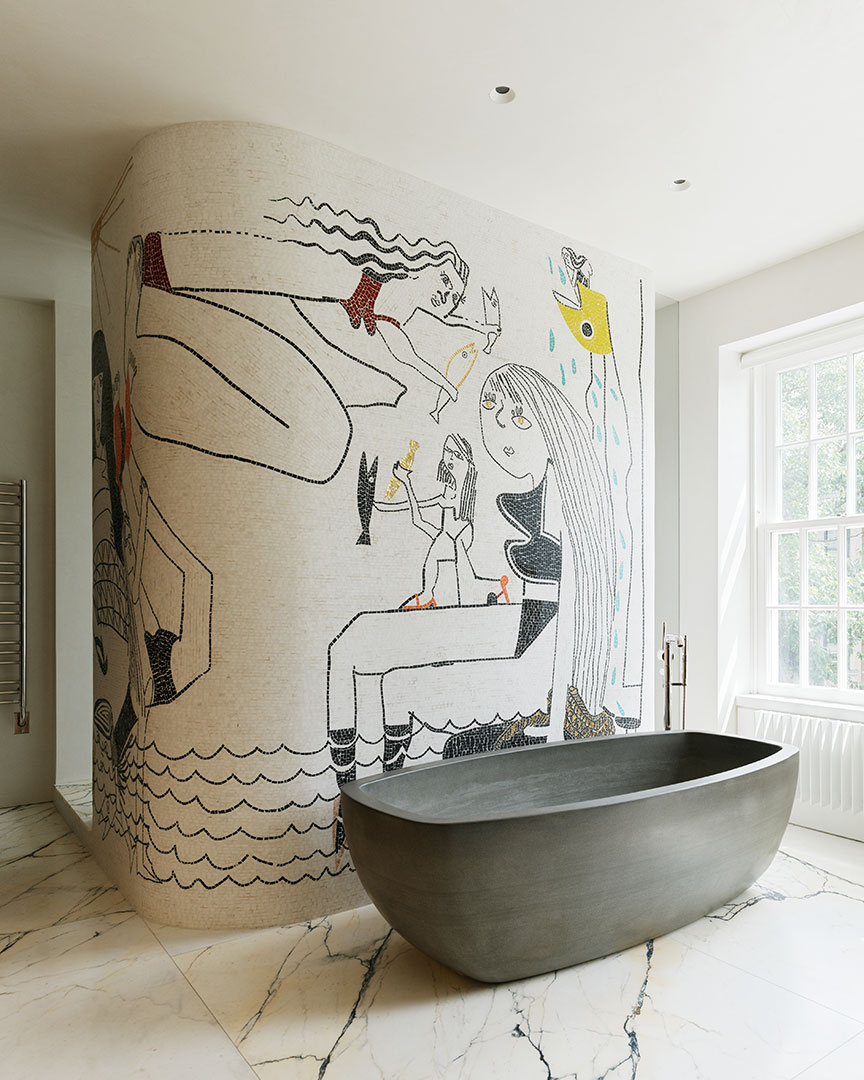 Of course, a film producer needs a screening room. A library and roof terrace are also part of the new footprint. “It’s all designed for creativity,” Dennis told AD. That includes exuberant displays of color, texture, and shape that take the mind to somewhere imaginative and serene.