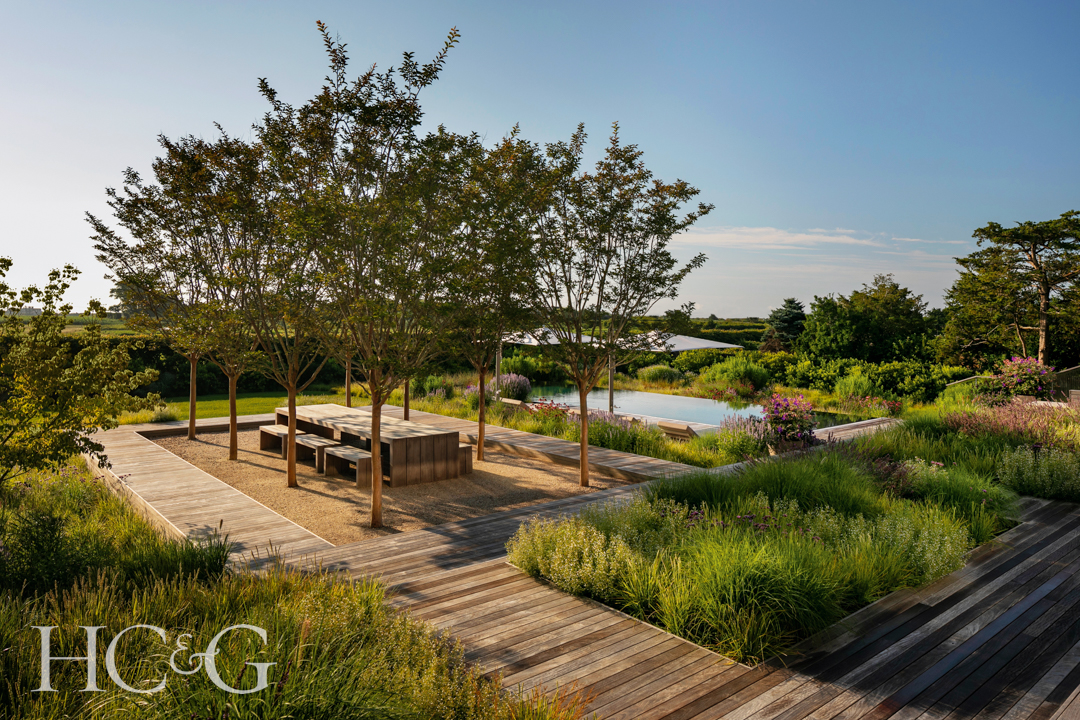 This East Hampton landscape was an extensive project encompassing everything from garden design to landscape architecture, installation and building. Landscape Details and its sister company, Building Details, handled the entire endeavor, ensuring that every element was meticulously planned and executed. The vision for the land involved transforming the space into a cohesive and aesthetically pleasing environment. Their team of experts took charge of the garden design, creating an outdoor space that blends seamlessly with the features of the property.