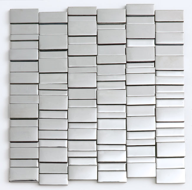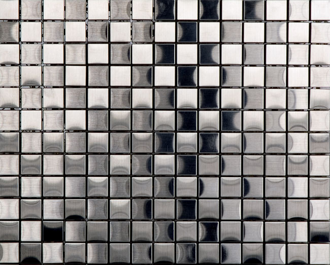 The ceramic and stainless steel Mosaico Acero tile from Porcelanosa can be used in showers, on backsplashes and on walls. Riverside, (203) 698-7618, porcelanosa-usa.com.