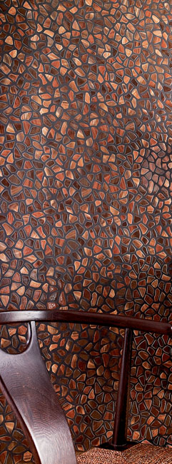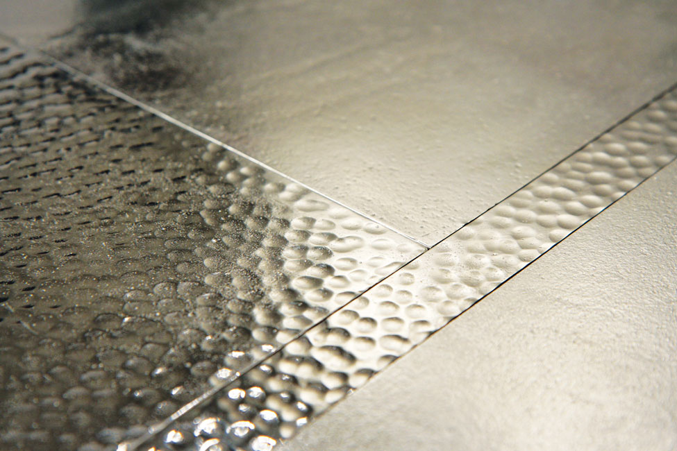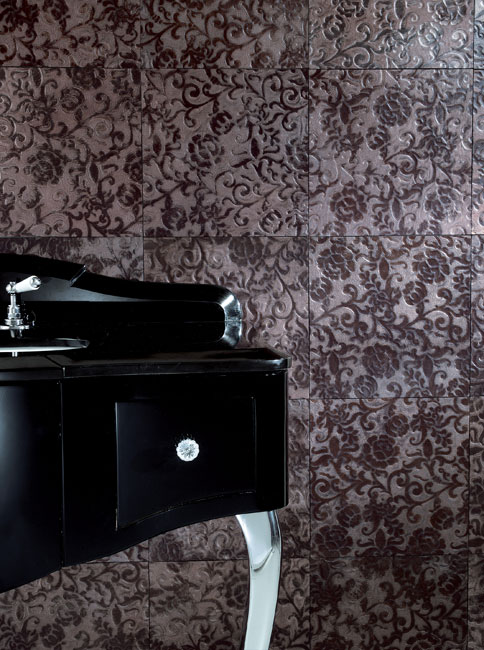 Artistic Tile’s LaLeaf Copper Antique Leaf tile looks like a solid gem, but it’s actually glass with copper leaf on the underside, making it safe for use in wet environments. 12’’x 24’’, White Plains, NY, (914) 422-0041, and Klaff’s, South Norwalk, (203) 866-1603, and Danbury, (203) 792-3903, artistictile.com.