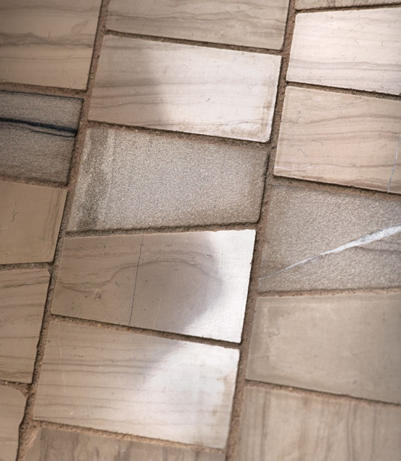 The Ledger Stone Collection from Nemo Tile will give you the look of a precise and painstaking installation of individual stone pieces, but the tiles are actually 6” x 24” sections. NYC, (212) 505-0009, nemotile.com.