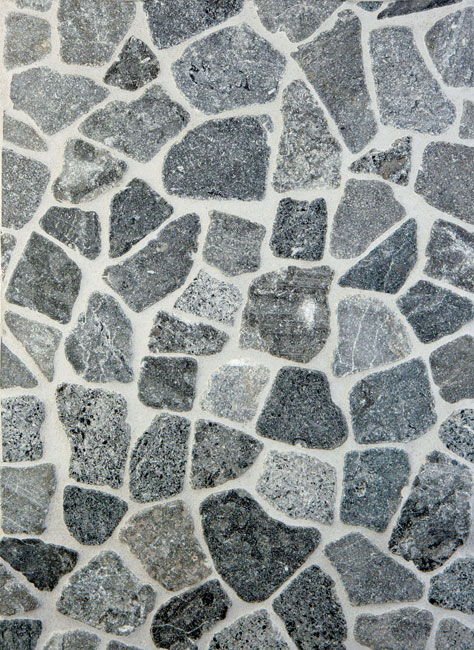 The individual pieces used to create Urban Archaeology’s Random Series Grey Marble tile are cut and tumbled to create this textured look. 12’’ x 12’’, NYC, (212) 431-4646, urbanarchaeology.com.