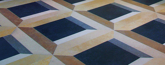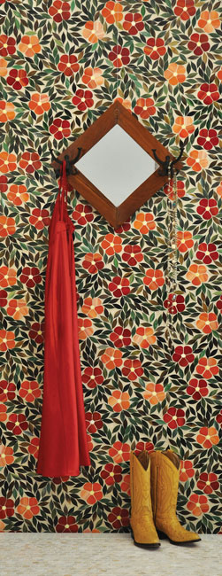 This flooring by Paris Ceramics will make you think you’re walking on a painted hard wood floor, but in truth a variety of stones was used to create a geometric effect. NYC, (212) 644-2782, parisceramicsamerica.com.