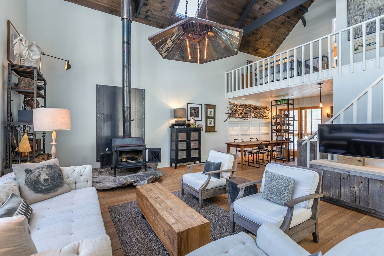 Clocking in at just 972 square feet, a tiny—but tony—cottage is listed on the Sharon market for $437,500. It’s owned by John Bartlett, the menswear designer, who uses it as his weekend home. The dwelling started life as a barn, built in 1850. Happily, it has retained its antique look, featuring rustic wood ceilings, beams and cabinetry. There’s also a handsome wood stove, slate flooring and a double-height wall of windows, with a screened porch and outdoor terrace for summer dinners.