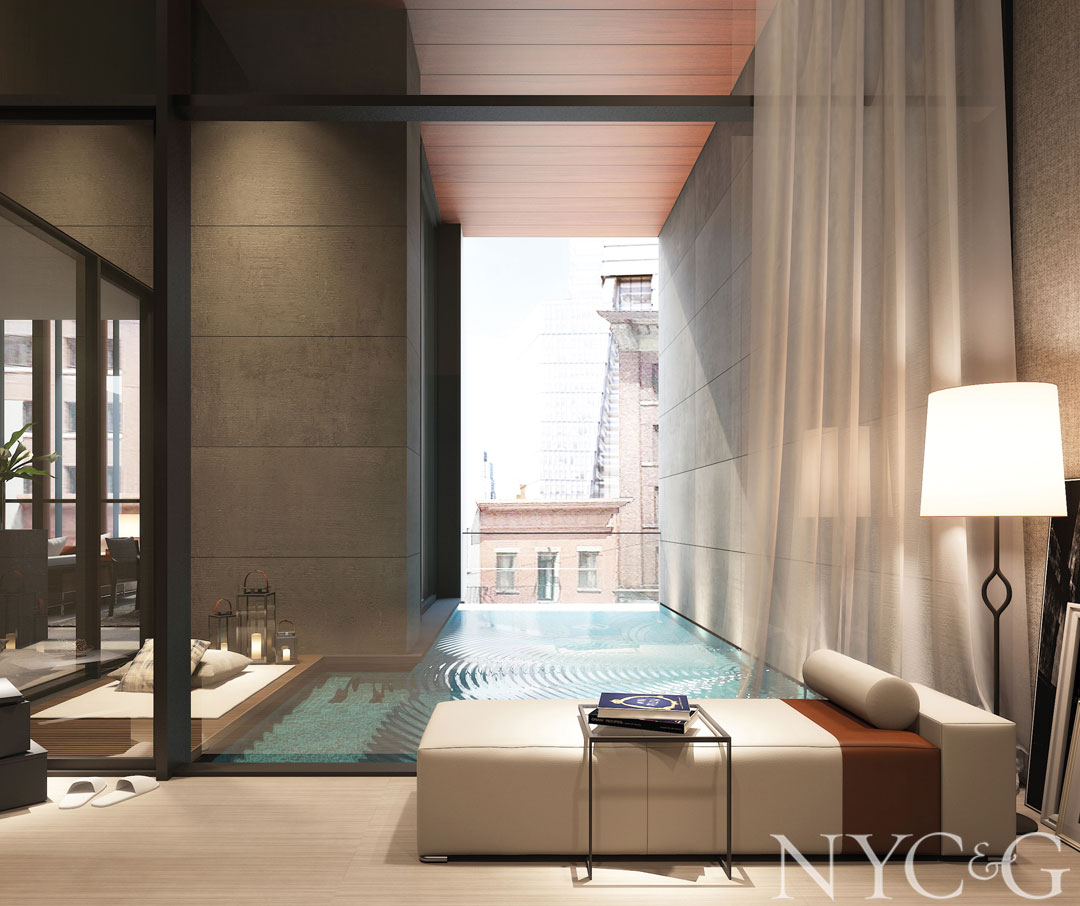 Sixteen of the building’s 31 units feature pools, some of which are tucked into serene rooftop terraces.
