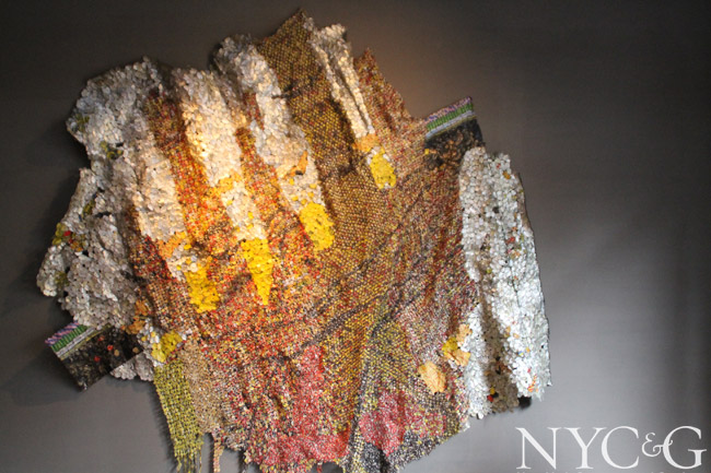Antiques dealer and art connoisseur Axel Vervoordt long known for creating the spare Belgian look always has a trick up his sleeve. This year in his booth Vervoordt presented a sumptuous metal tapestry by the contemporary Ghanaian sculptor El Anatsui.