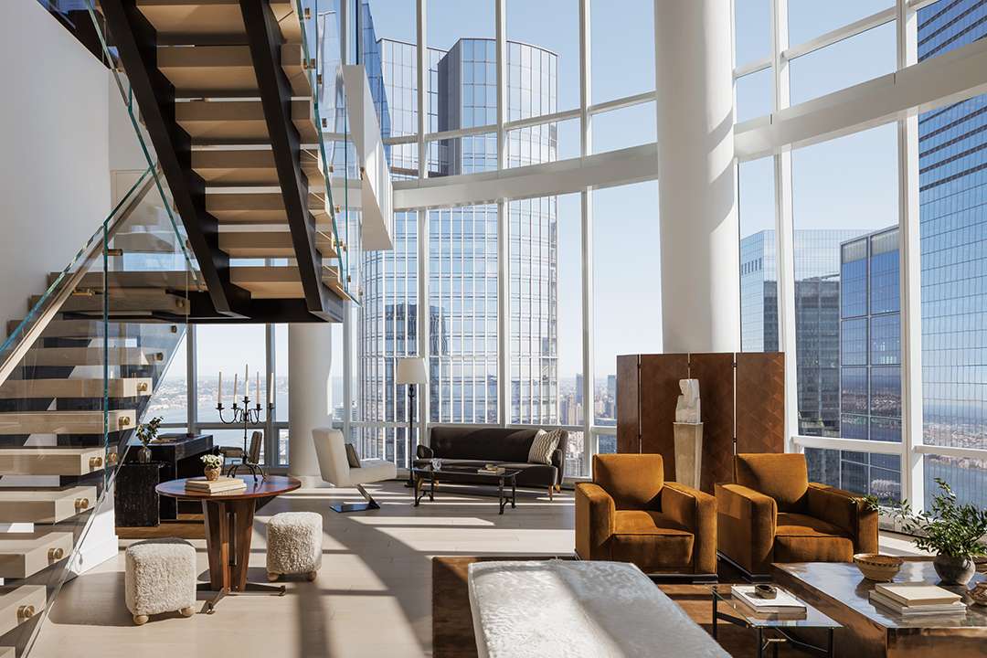 A dazzling duplex penthouse has hit the market on the 88th and 89th floors of 15 Hudson Yards for a steep $22.95 million, consisting of wrapping walls of glass, billowing spaces, and remarkable city views. But, the best part? It is being sold fully furnished. With the interiors crafted by noted celebrity designer Nate Berkus, an affluent buyer is not only gaining his renowned taste and styling, but the chance to avoid the extra time and money it takes to dress or renovate a property once acquired.