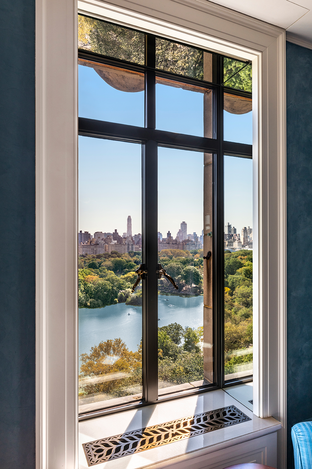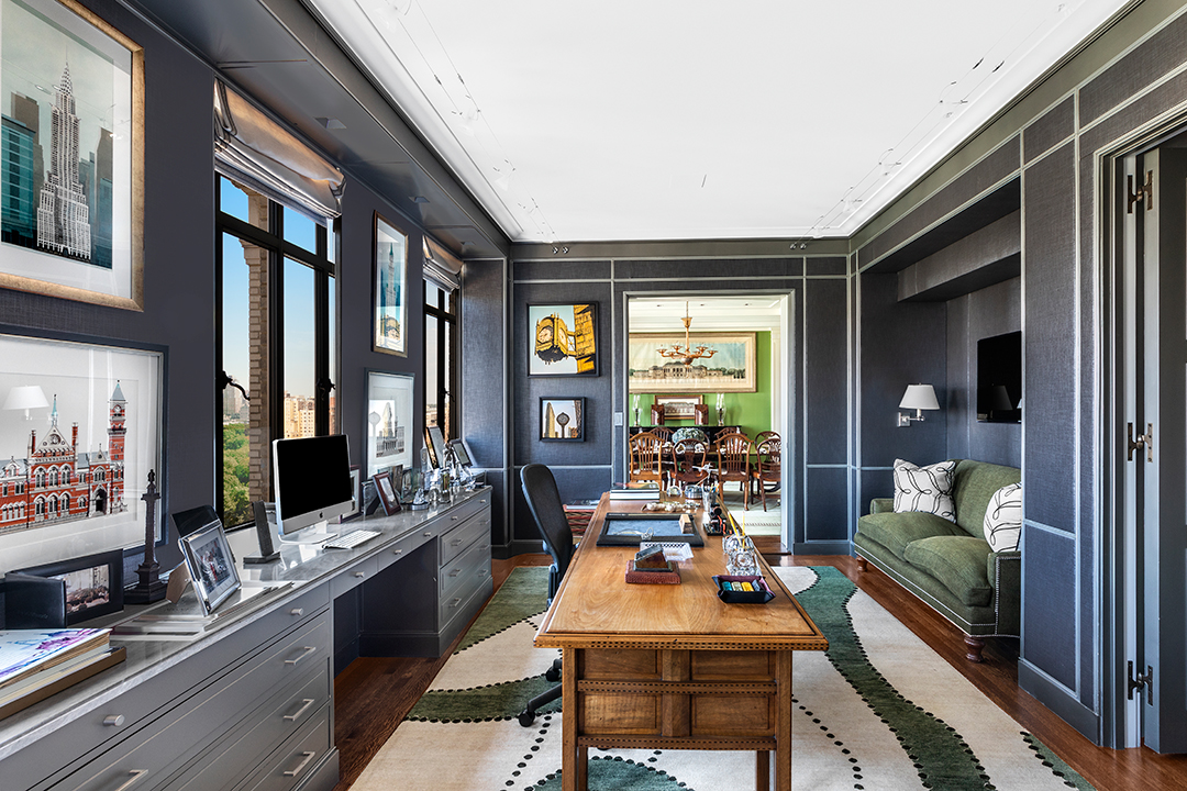With a floor plan of over 5,500-square-feet, this 14 room luxury apartment provides numerous opportunities for an imaginative homeowner. Additional bedrooms can be added thanks to a bonus room, but the pad is currently set up with three bedrooms in total. The master suite is the epitome of upscale living with a combined walk-in closet and dressing room, a full ensuite and naturally, uninterrupted views of Central Park. A large formal living room sits nearby, featuring a gas fireplace and five setback casement windows.