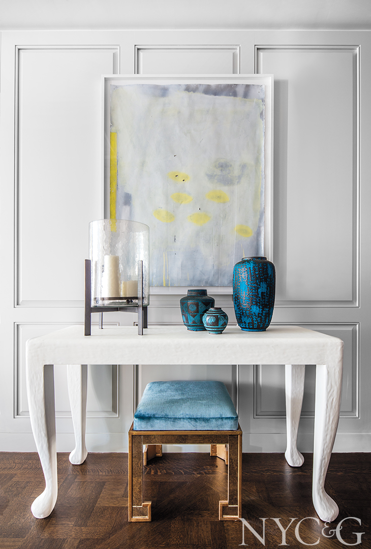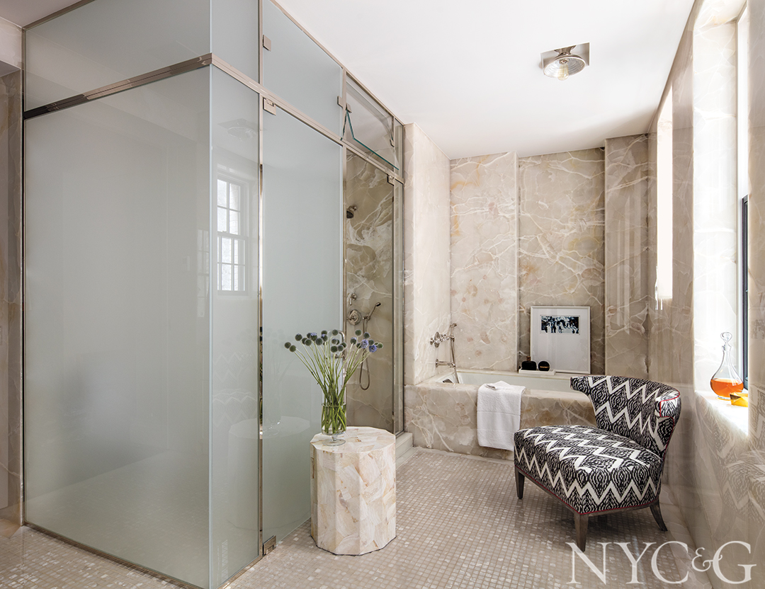 Filicia, who worked at venerable design practices such as Parish-Hadley, Robert Metzger Interiors, and Bilhuber & Associates before opening his own firm in 1998, typically starts a project by creating a cohesive and detailed overall plan, including the furniture layout. “Then we do elevations for all the rooms,” he says, “and then we start looking at the lighting.” Despite the work that was done during the building’s conversion, some reconfiguring was a necessary part of the program. “We took down some walls and put others up. We modified the kitchen cabinets, added sconces, ceiling lights, and closets, customized the dressing rooms in the master suite, and replaced the fireplace surround in the living room. We basically took what was a beautiful apartment and turned it into a custom home.”