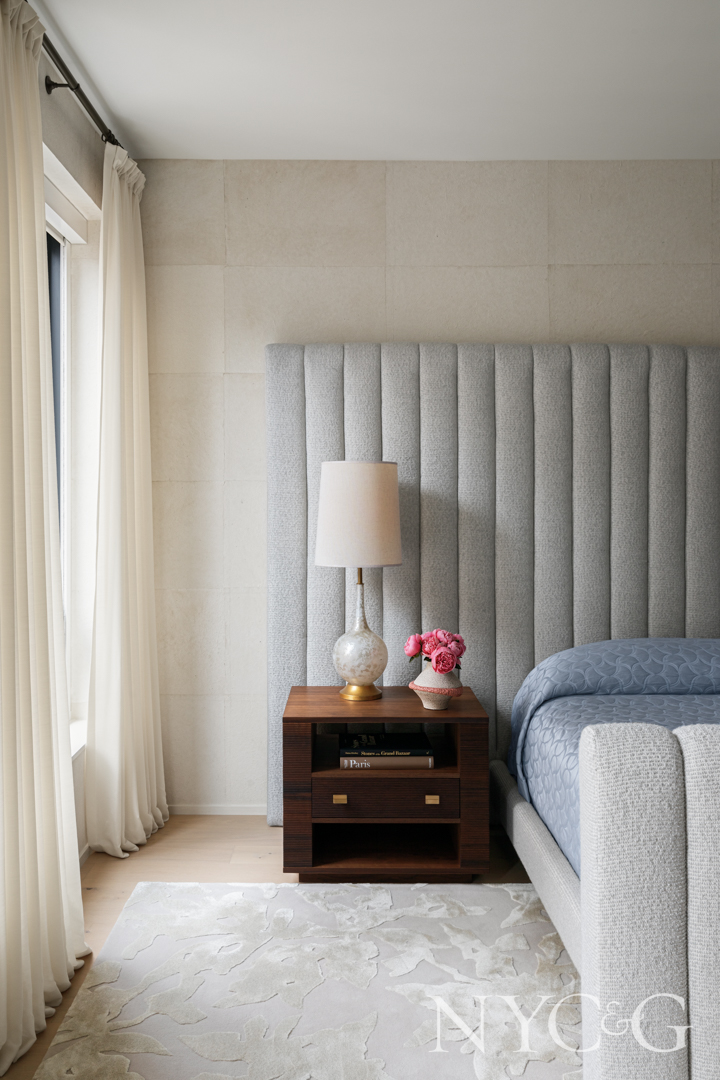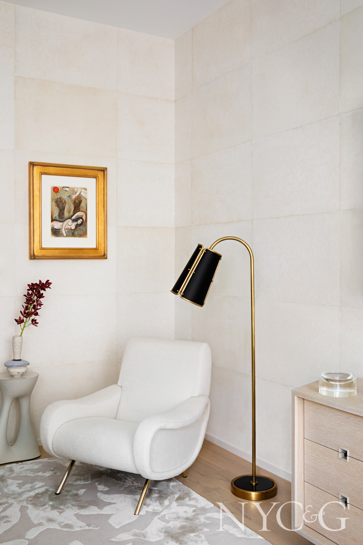 Fifteen years ago, Curry took the leap and launched her own design firm, making her name on fashion-forward interiors with a decidedly cushy, yet unfussy appeal. Among her most recent commissions: the 3,200-square-foot three-bedroom condo featured here, located in a much-lauded Rem Koolhaas–designed structure in Gramercy. The doorman recommended Curry for the job. “We had been doing another project in the building when these new clients purchased their pied-à-terre,” recounts Curry, who set out to create a chic pad for empty nesters embarking on the next phase of their life. “Residential design is fun because I get to wear a lot of hats, whether I’m focusing on something beachy, bohemian, or French-inspired. The driving factor behind any space is always the client, and digging out of them what will spark joy. Here, we focused on calmness and serenity while exploring their interest in art, color, and texture.”