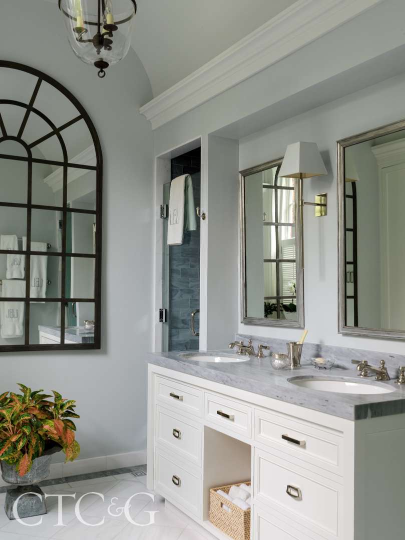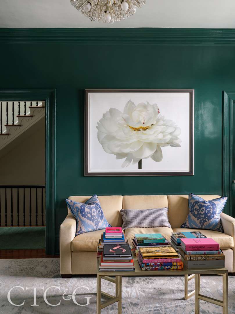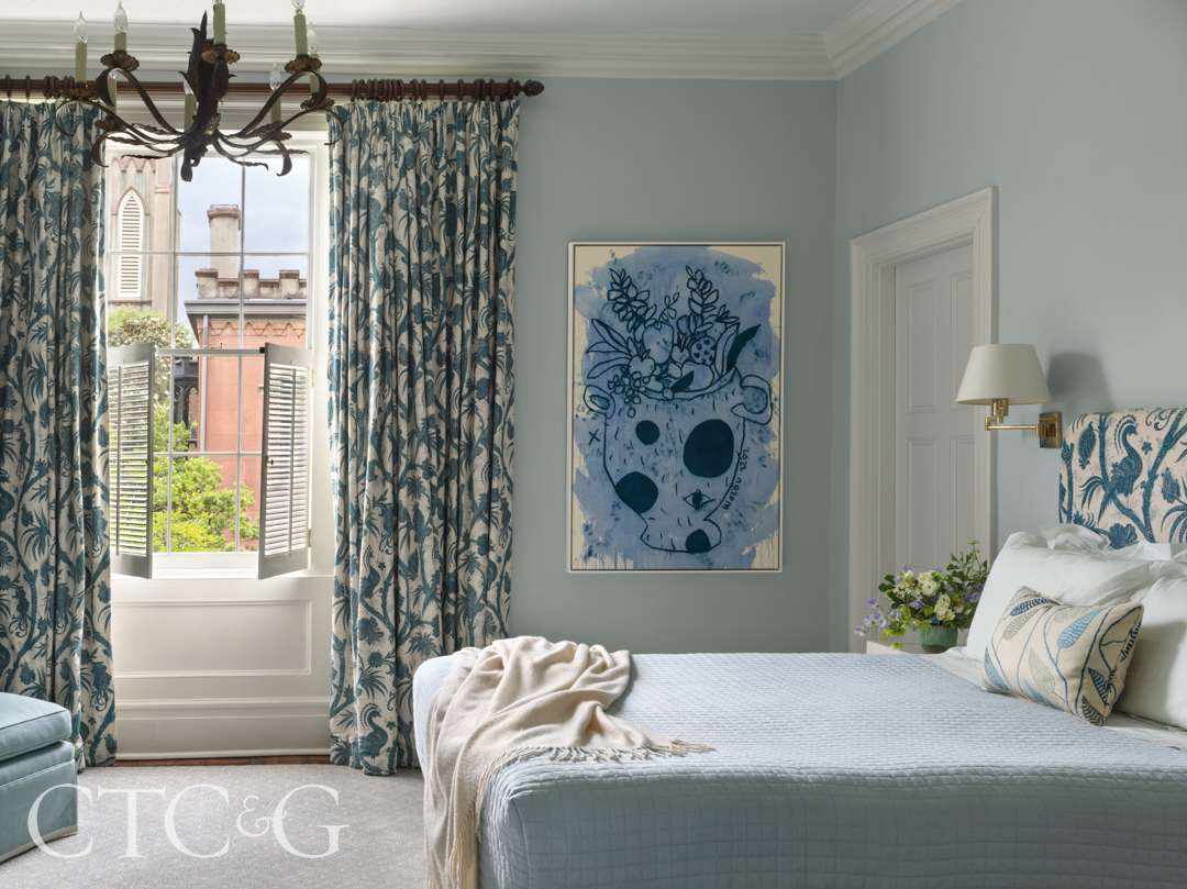 Of the house they chose, Morgan says, “Everything about it is beautiful: its marble steps going up the landing, gracious windows, and the views of St. John’s church and steeple make it feel like London.” While the homeowner and Morgan had worked together for a spell as designers, Morgan concedes that almost all the chosen furnishings were the homeowner’s alone. Louise Brooks, of the New Canaan–based architectural firm Brooks & Falotico, had come down to perform modifications, including the creation of a home office from a bedroom, adding built-in closets in the primary bedroom, and making (mostly) cosmetic changes in the kitchen.