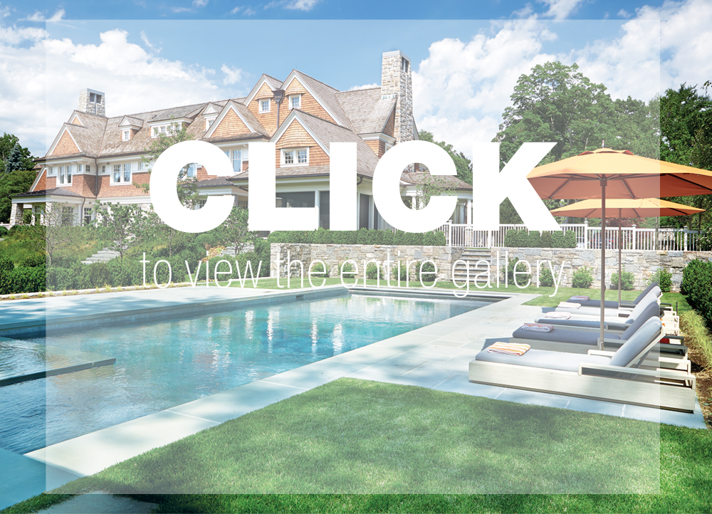 But the rolling 2.4-acre site with its swimming pool and tennis court wasn’t always so. “Nothing on the old property had been maintained, and the site work presented a major challenge,” recalls builder Jim Hoffman of Sound Beach Partners, who, along with Doron Sabag, was the owner’s first hire; they also brought the architects and designer to the project. Hoffman credits landscape architect James Doyle of Doyle Herman Design Associates with organizing the back of the property with a series of terraced granite steps that now lead to a flat grassy play area and the tennis court below it. “He managed to place the tennis courts at the bottom of a second hill and almost out of sight,” Hoffman adds.