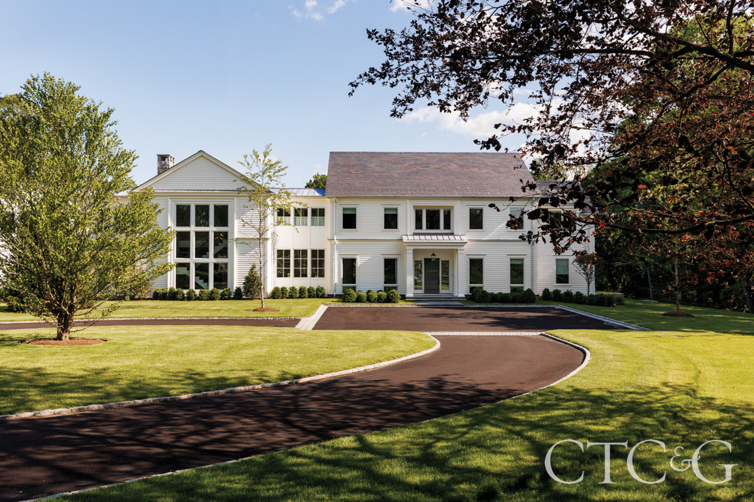 Across its 32-year history, Laura Kaehler Architects of Greenwich has designed everything from museums and libraries to New York City apartments. But, as Laura Kaehler notes, the firm’s bread and butter is custom homes. Recommended for this project by Frank Pompa of Pompa Development & Construction—the project’s builder and a longtime collaborator—Kaehler was commissioned to design a large summer residence for a family of four on a prime four-acre hilltop site. The property slopes south, with sweeping views of Long Island Sound and abundant natural light. “There’s very pretty sunlight,” Kaehler says—and capturing that light, along with the vistas, became central to the design.