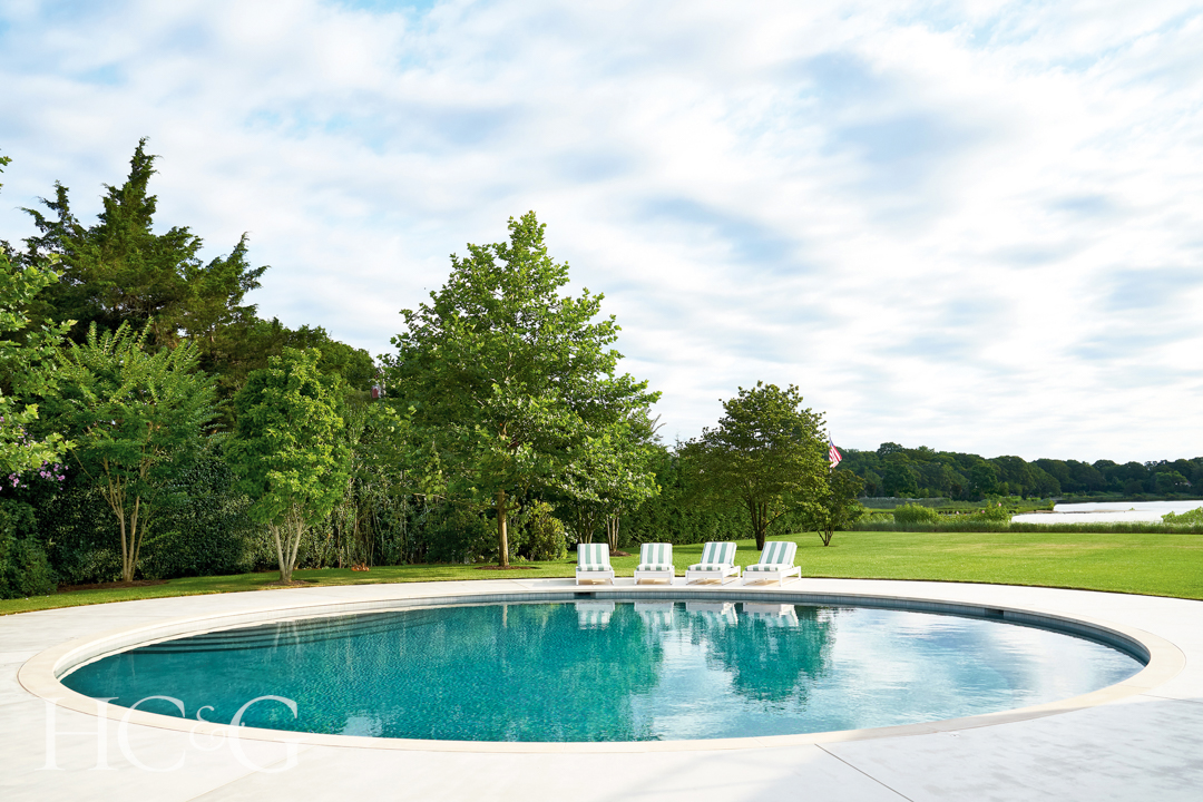 Indeed, with its expansive loggia, terraces, and oversized casement windows and French doors, this house beckons Kaki, Scott and their four children outdoors. With a separate guest house, tennis court, boathouse and dock, their new home is the quintessence of summer living.