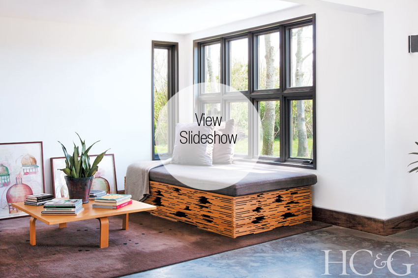 Bleckner, who confesses to a complete lack of interest in decorating, was inclined to rebuild an exact replica of the previous home. “My mind doesn’t work that way,” he says. “I focus all my creativity on painting. The infinite options of interior design test the limits of my intelligence—and my patience.” But Freeman saw an opportunity to get things right—and try out his own considerable design chops. “I wanted to preserve the house’s cottage-y feel, but my goal was to make it look unified, intentional, not slapped together,” he says. To that end, Freeman added more windows, removed an unsightly fireplace, redirected a staircase, and enclosed the two porches. Adding a new bedroom suite boosted the home’s square footage to 2,200; Freeman converted his own former bedroom into a laundry area and half-bath. New solar panels and a geothermal heating and cooling system have taken the house, he adds proudly, “95 percent off the grid.”