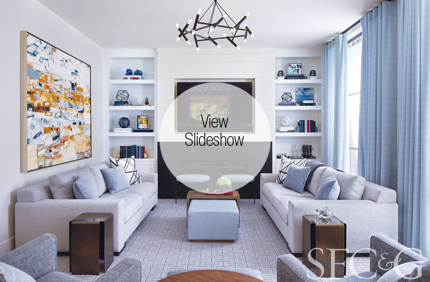 In a home on a tree-lined, sylvan lane in Ross, familiarity breeds contentment. “I’ve created four interiors for this family,” says designer Kelly Hohla, “and the trust and friendship we’ve built gives me the freedom to work intuitively.” That translates to her fulfilling the owners’ request for “elegance, practicality and comfort.” Architect Shay Zak has a similar rapport with the clients; having collaborated on two projects with them, here he created a new, minimalist take on traditional shingle style.