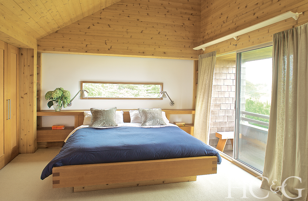 In the master bedroom, Fortebraccio sconces from Luceplan flank a Miles Jaffe–designed platform bed.