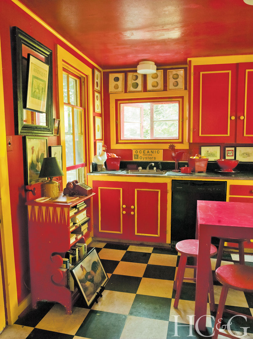 A friend convinced Creveling to paint the kitchen a shocking red with yellow trim.