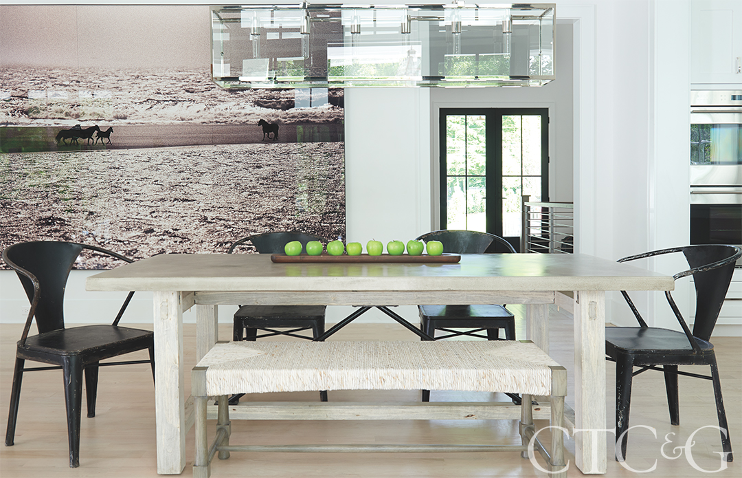 “Darien has a certain style, and we wanted to do something very different,” says Walton. “The house was on the 2017 Darien House Tour [Homes With Heart], and everyone who walked through said this is so different for Darien, which is a big compliment for us. It definitely has more of an urban feel to it.” Adds Jaime, “They just have a great eye for special things. It’s the mix of the old and new and that it also feels so comfortable in every space. It’s everything I hoped it would be.”