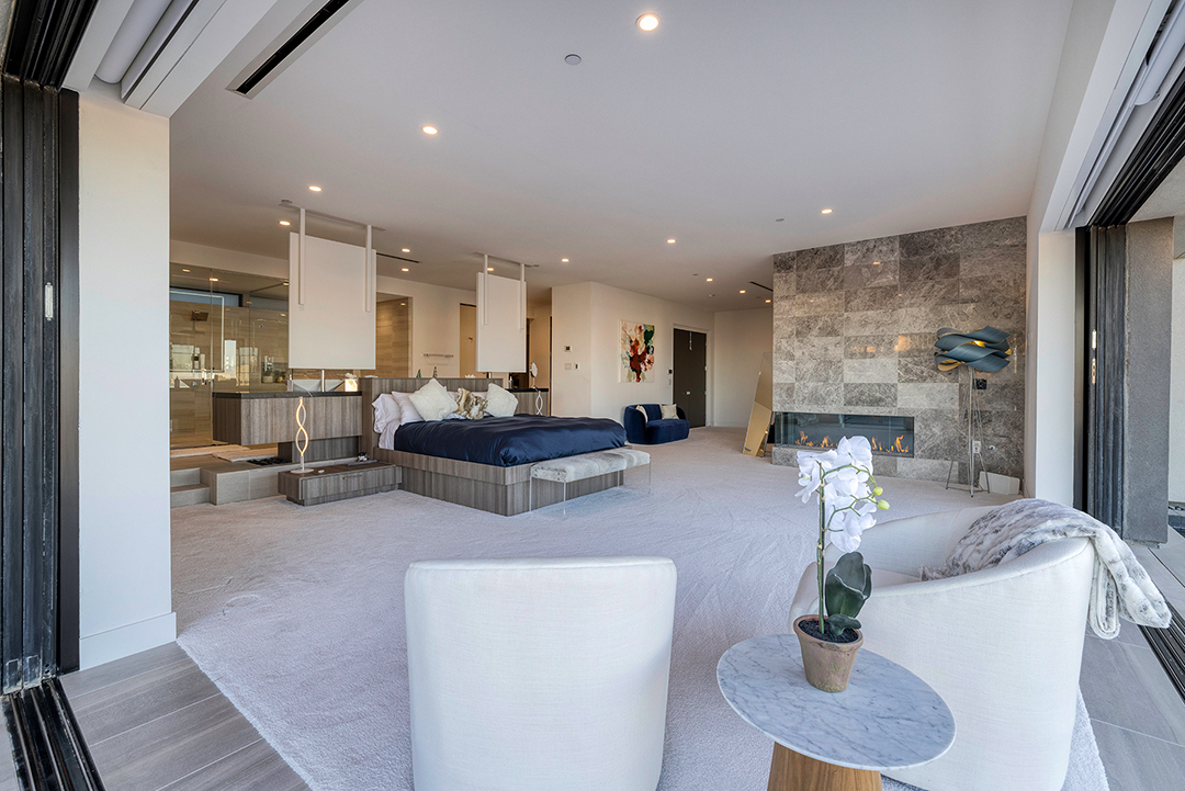 There are seven bedrooms and eight bathrooms, as well as perks like a fully decked-out at-home gym and a custom wine closet enclosed by glass. The primary suite feels like its own wing, with hidden features like a private outdoor shower, cabana, and a spa-like ensuite.
