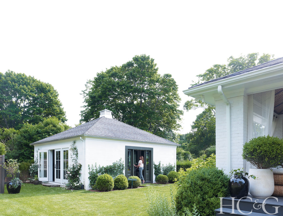 Devitt converted the garage into a rose-trellised, boxwood-accented home office.