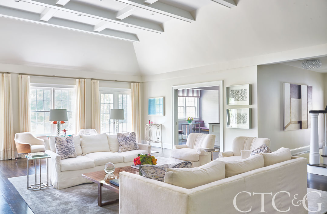 The shift was every bit their intention. To realize their vision, the couple tapped architect Bob Tucker of Huestis Tucker Architects in Woodbridge and interior designer Marcia Tucker of Marcia Tucker Interiors in Greenwich. (The Tuckers are not only unrelated, they did not meet until the project was photographed.)