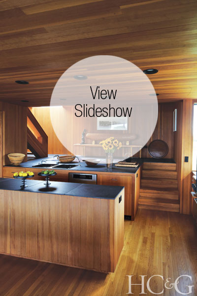 For Sabellarosa, revising the work of a noted architect was a challenge. “When you’re younger and you get a shot, of course you want to leave your stamp,” he says, “and this project actually took a lot of self-discipline. On the other hand, I could say, ‘I’ll play Jaffe,’ and be contextual.” Certain of Jaffe’s design strategies have endured, such as matching countertops and floor surfaces, which Jaffe accomplished in the original kitchen with black West Virginia slate. Sabellarosa echoed the notion by using poured concrete for both the vanities and floors of the new bathrooms. In the master bath, which features a custom concrete tub, he added opaque sandblasted glass walls and floor panels, providing privacy and light while referencing the patina of sea glass.