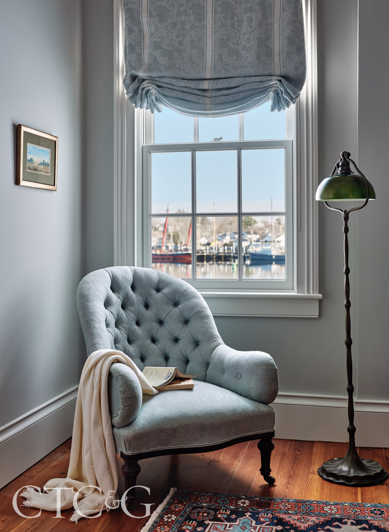 The current owners previously lived in Mystic—loved it—and planned to retire there. Nudged by the pandemic, the couple discovered the house in 2020. At the time, they were still living in Texas, where the husband, also a captain, was working as a ship’s pilot in Houston harbor, one of the narrowest and busiest ports in the world. But with its romantic history and views to the river, this house was exactly where they wanted to be.