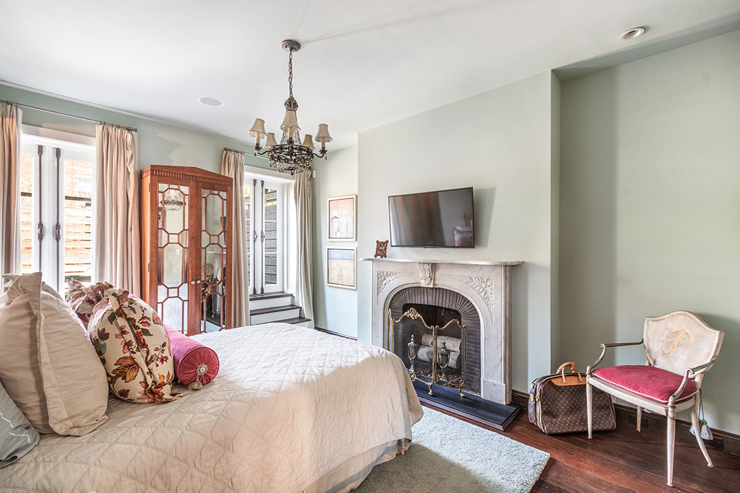 The home’s brick facade is just a hint of the character and charm that awaits inside. With 5,300 square feet of interior living space and four floors, there is plenty of space to get cozy and unwind. Really, who could complain about seven fireplaces and a secondary kitchen? But, the best moments seem to be reserved for the owner of the house. The light-flooded primary bedroom fills the entirety of the top floor, featuring custom closets, a dressing area, and a bright bathroom centered by a huge bathtub.
