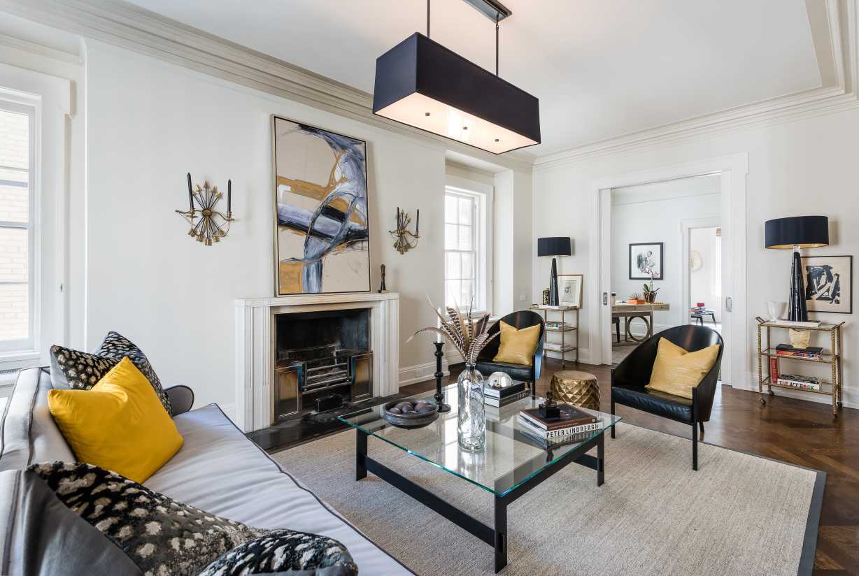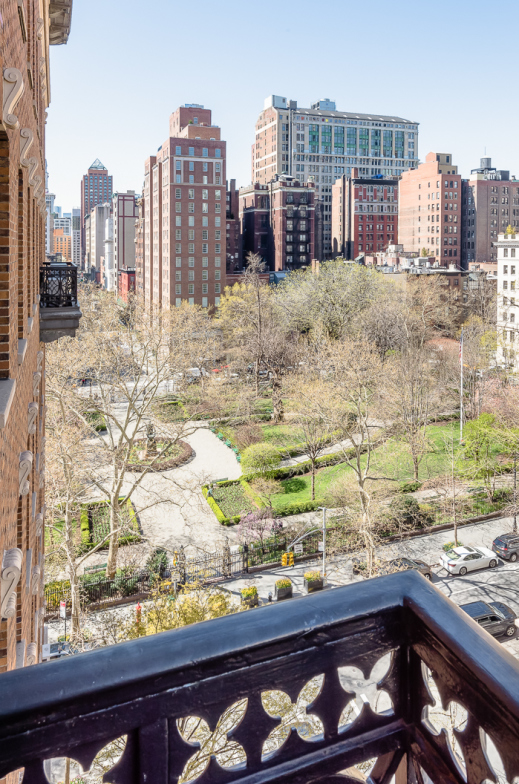 Besides the coveted Gramercy Park key, the new owners get an elegant five-bedroom, three-and-a-half-bathroom pre-war with a modern open layout. A foyer opens to the kitchen and dining room as well as an open living room featuring a neoclassical marble fireplace. French doors let in plenty of light and open to a Juliet balcony overlooking Gramercy Park.