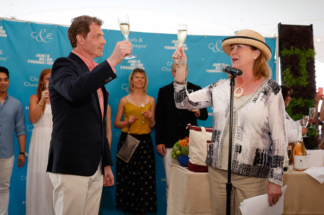 This year’s honored chef was Bobby Flay, who in his acceptance speech seemed truly humbled—rather uncharacteristic for him. Wearing a smart hat and lovely outfit, Susan Ungaro, the head of the foundation, delivered her usual impassioned thank-you to all of the sponsors and chefs who make all the James Beard chef scholarships possible. Unlike the Southeast Asian heat of the past several years, the evening was cool and pleasant and the Champagne Taittinger really elevated the mood of the highly social epicurean crowd.