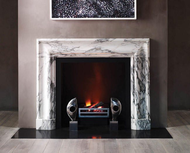 Carved in advance, Chesney’s new Materials collection offers a unique opportunity to highlight the brand’s most unique marble mantels, such as the Arabescato Corchia shown here. Price upon request, D&D, 646-840-0609, chesneys.com.