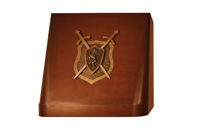 Rangecraft can create any design, such as your family crest, to personalize its array of rangehoods. Here, a coat of arms is mounted on the Aspen hood, available in copper, brass or stainless steel in a choice of a mirror or antique finish. Price upon request, rangecraft.com