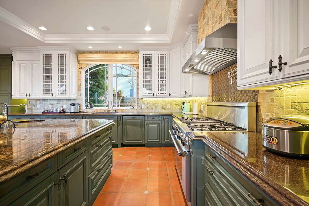 The actress’s former 5,200-square-foot abode in Studio City has a classic California feel, outfitted in a terracotta roof and other Spanish-style details. You can also find wrought-iron details woven throughout, like on the soaring staircase or decorating the central archway. Wherever you are, there’s a clear melding of Old World charm with updated touches, shown especially in the large chef’s kitchen. Top-of-the-line appliances mix with two-tone cabinetry, while a terracotta tile flows throughout the space. Some may think it needs a makeover, but rustic, traditional kitchens are back in..! Gone is the trend where kitchens must to be white, sterile, and sleek to be luxurious.